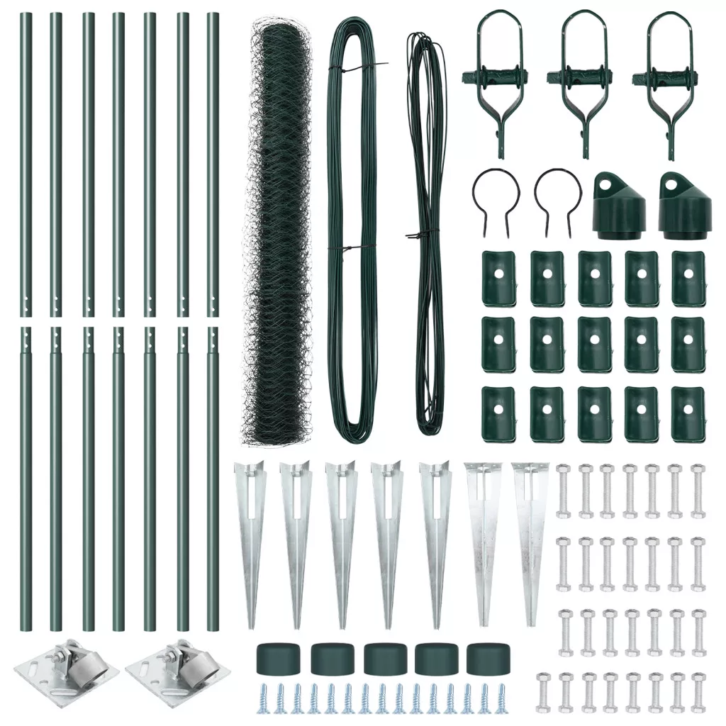 Ez a vidaXL hatszögletű kerítés stílusosan jelöli ki a határokat a kertedben vagy kültéri területeiden. A sima zöld felület és az erős fémből készült struktúra mind a tartóssághoz, mind a vonzerejéhez hozzájárul a kültéri terepen. Tartós anyag: Fém, ami sokáig bírja. Az UV védelem segít, hogy a nap ne fakítsa ki. Tökéletes kertekhez: A divatos zöld szín jól passzol a különféle tájakhoz, biztosítva egy biztonságos akadályt és feldobva a kerted vonzerejét. Egyszerű összeszerelés: Könnyen összerakhatod; csak fogj egy kalapácsot meg mérőszalagot, és már kész is vagy. Teljes készlet: Minden szükséges elemet tartalmaz a zökkenőmentes telepítéshez, beleértve a kerítés hálót, oszlopokat és rögzítőket.