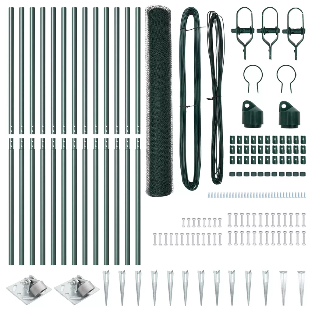 Kerítési Szett 2 db Zöld Fém, Műanyag 25 x 1,2 m Tartós