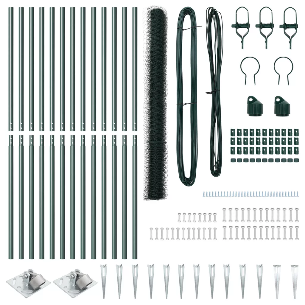 A vidaXL hatszögletű kerítés egy megbízható és stílusos módja a kültéri terek elkerítésének. Gyönyörű zöld színével és masszív acélszerkezetével feldobja a kerted, miközben biztosítja a biztonságot és a tartósságot. Masszív kivitel: Ez a masszív kerítés bármilyen időjárást elvisel, és biztonságos határt biztosít. Porszórt acélból készült, így erős és stabil marad. Tökéletes szabadtéri területekhez: A vibráló zöld szín jól illeszkedik a természetbe, nagyszerű kiegészítője a kültéri helyeidnek. Könnyű összeszerelés: Csak két ember, egy kalapács, mérőszalag és vízmérték szükséges ahhoz, hogy pillanatok alatt felállítsd ezt a kerítést. Minimalista stílus: Tiszta vonalai és friss dizájnja bármilyen kültéri helyhez passzol—legyen az kert, udvar, vagy bárhol, ahol elegáns határt szeretnél. Teljes készlet: Ez a szett mindent tartalmaz, amire szükséged van—kerítés rudak, oszlopok és háló—így zökkenőmentesen telepíthető.