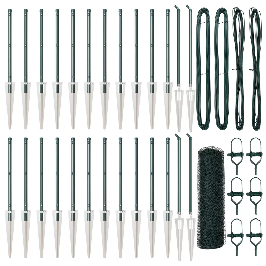 Ez a vidaXL Hatos kerítés kültéri használatra lett tervezve. Megbízható módja a kerted és ingatlanod védelmének. A fényes zöld színével és strapabíró anyagaival nemcsak biztonságban tartja a dolgaidat, hanem szép megjelenést is ad a kültéri terednek. Tartós anyag: UV-álló szintetikus műanyagból és fémből készült, a kerítés jól bírja az időjárást, garantálva, hogy tartós marad és védi a kültéri területeket. Tökéletes kertekhez: A vibráló zöld szín nagyszerűen illeszkedik a kültéri terekhez, szolid védelmet nyújtva a házikedvenceknek és gyerekeknek, miközben emeli a kert összképét. Könnyű összeszerelés: Zökkenőmentes beállításra tervezve, egy ember is el tudja készíteni alap szerszámokkal, mint például egy kalapáccsal és egy mérőszalaggal, így ez igazán gyors feladat. Átfogó készlet: Minden benne van – 50 kerítésoszlop, egy 50 m-es háló, tüskealapok és kötelek, tehát egyszerűen beállíthatod zökkenőmentesen.