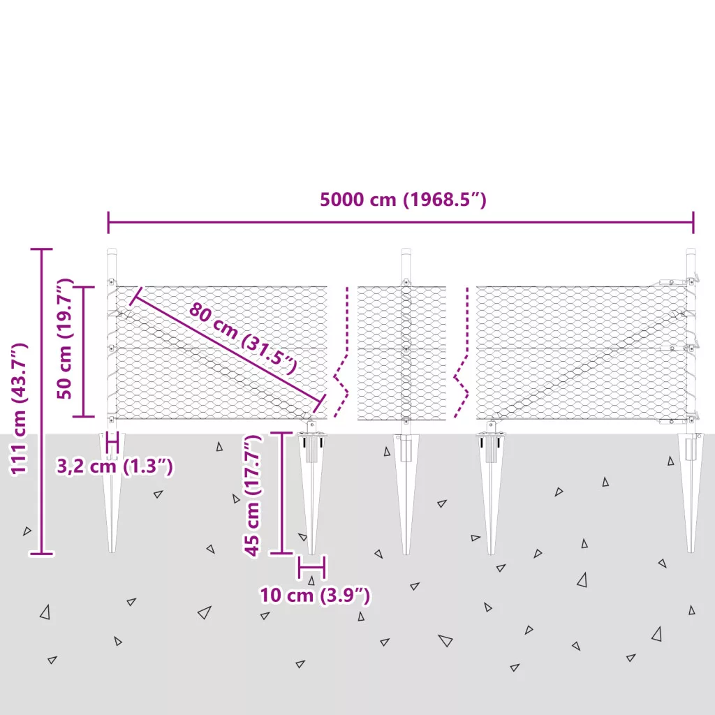 Ez a vidaXL Hatszögletű Kerítés szuper erős kültéri határ, amit kertekhez és külső terekhez terveztek. Modern szürke színben elérhető, és elég erős ahhoz, hogy feldobja a teret, miközben védi a magánéletet és a biztonságot. Tartós Anyag: UV-álló fémből és műanyag hálóból készült, ez a kerítés elég erős, hogy bírja a kültéri élet viszontagságait, biztosítva a stabilitást és a biztonságot. Nagyszerű Kültéri Határokhoz: A stílusos szürke szín bármilyen kültéri dekorációval passzol, így erős határt képez a háziállatok és gyerekek számára, vagy egy sima megoldás a kerted határának kijelölésére. Egyszerű Összeszerelés: Ezt a kerítést úgy tervezték, hogy bárki könnyedén összeszerelhesse, mindennapi szerszámokkal, mint például egy kalapáccsal és mérőszalaggal, így DJY rajongóknak tökéletes. Változatos Méretek: A 50x0.5 m-es méretével ez a hatszögletű kerítés sokféle kültéri helyhez illeszkedik, lehetővé téve, hogy akárhogy beállítsd. Teljes Készlet: Ez a kerítés készlet minden alapvető elemet tartalmaz - oszlopokat, síneket, hálót és rögzítőket - az egyszerű telepítés érdekében.