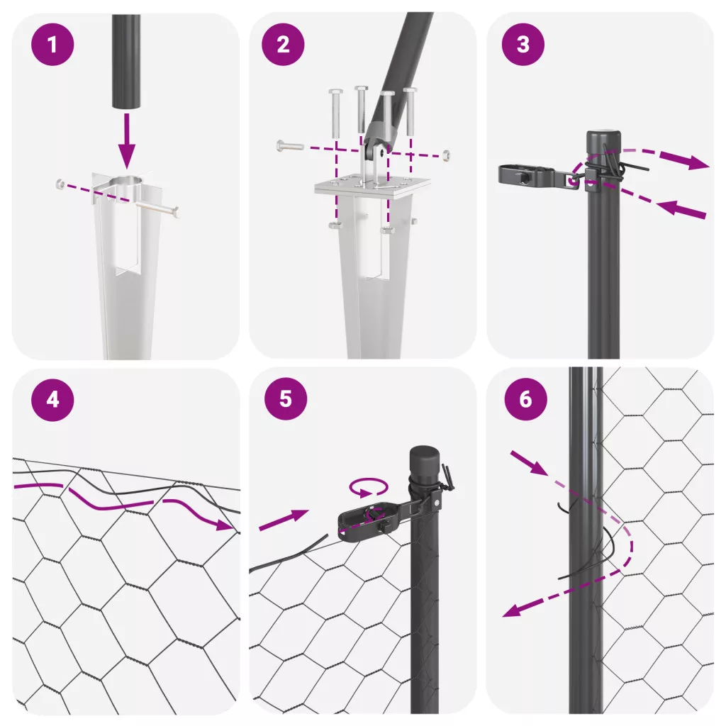 Szállítás tartalmazza: Kerítésoszlopok, sínek, hálótekercs, cölöpök, rögzítők, csatlakozók