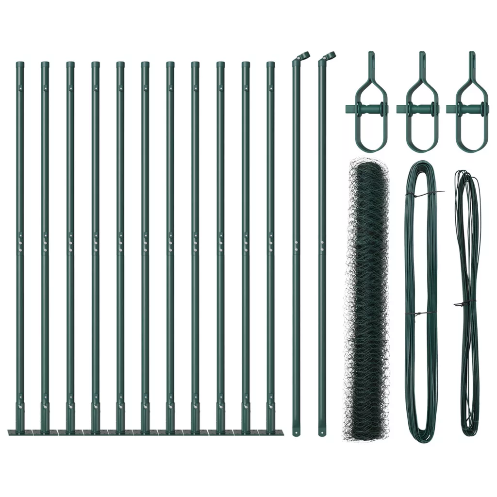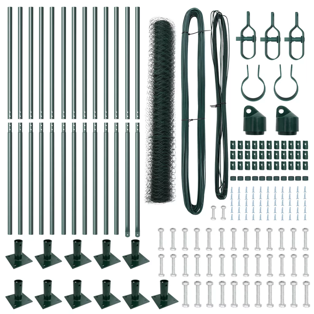 A vidaXL kültéri hatszögletű kerítés szett zöld színben a stílus és megbízhatóság tökéletes kombinációja kinti helyek elkerítésére. Élénk zöld színe tökéletesen illik a kerti hangulathoz, miközben szilárd védelmet nyújt, így a legjobb választás különféle kültéri igényekhez. Tartós anyag: Ez a kerítés szett UV-álló fémből és bevont huzalból készült, így vészhelyzet esetén is bírni fogja az időjárást, miközben megőrzi a külső megjelenését. Ideális kültéri helyekhez: A figyelemfelkeltő zöld szín szépen beleillik a természetbe, védelmet biztosít házikedvenceknek és gyerekeknek. Egyszerű összeszerelés: Két ember könnyen össze tudja rakni alap szerszámokkal, így gyors és gond nélkül telepítheted. Számos összetevő: Minden alapvető elemet tartalmaz, beleértve az oszlopokat, huzalt és feszítőket, könnyedén elvégezhető a telepítés.