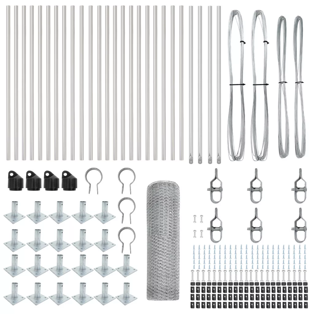 Ez a vidaXL kültéri kerítésszett egy szuper megbízható módot biztosít kertek és kültéri helyek körbekerítésére. A szép horganyzott acél kinézetével és strapabíró dizájnjával ideális a kerted vagy udvarod biztonságban tartására. Tartós kivitel: Kiváló minőségű horganyzott acélból készült, ez a kerítésszett jól bírja a nehéz kültéri körülményeket, garantálva a tartósságot és a védelmet. Ideális kültéri kerítésekhez: A praktikus szürke szín jól passzol különböző kültéri stílusokhoz, erős elkerítést biztosít a háziállatok és gyerekek számára, de még a kertedhez is jól illik. Könnyű összeszerelés: Kérésedre lett megtervezve, ezt a kerítést két ember és alapvető szerszámok, mint fúró és kalapács segítségével gyorsan fel tudod állítani, így hamar biztonságba kerül a kültéri tered. Változatos méretek: A 50m x 0.5m méretével ez a kerítésszett különböző térigényekhez alkalmazkodik, tökéletes mindenféle kültéri elrendezéshez. Teljes szett: Ez a kerítésszett minden eszközt tartalmaz az összeszereléshez, beleértve a kerítésszekciókat, oszlopokat, csatlakozókat és feszítő drótot, így biztos lehetsz benne, hogy nem lesz gondod az összeszereléssel.