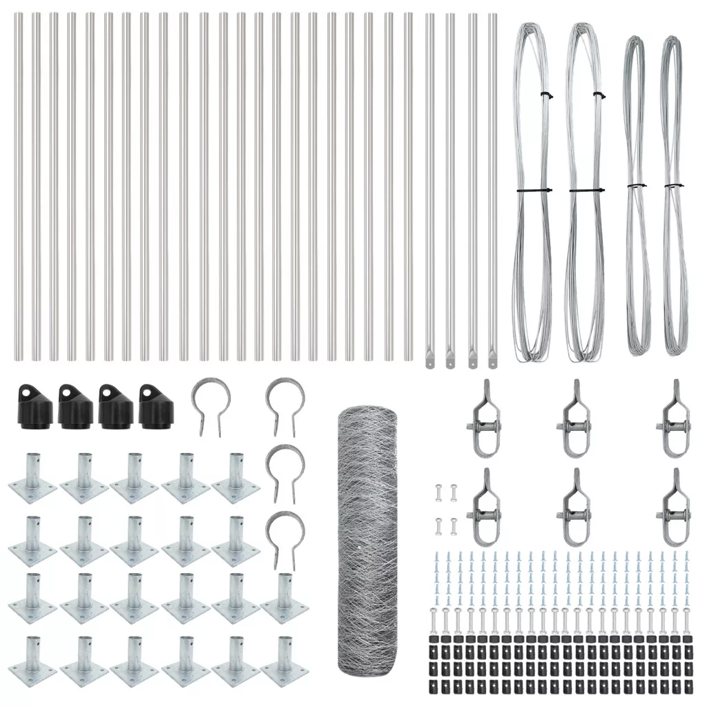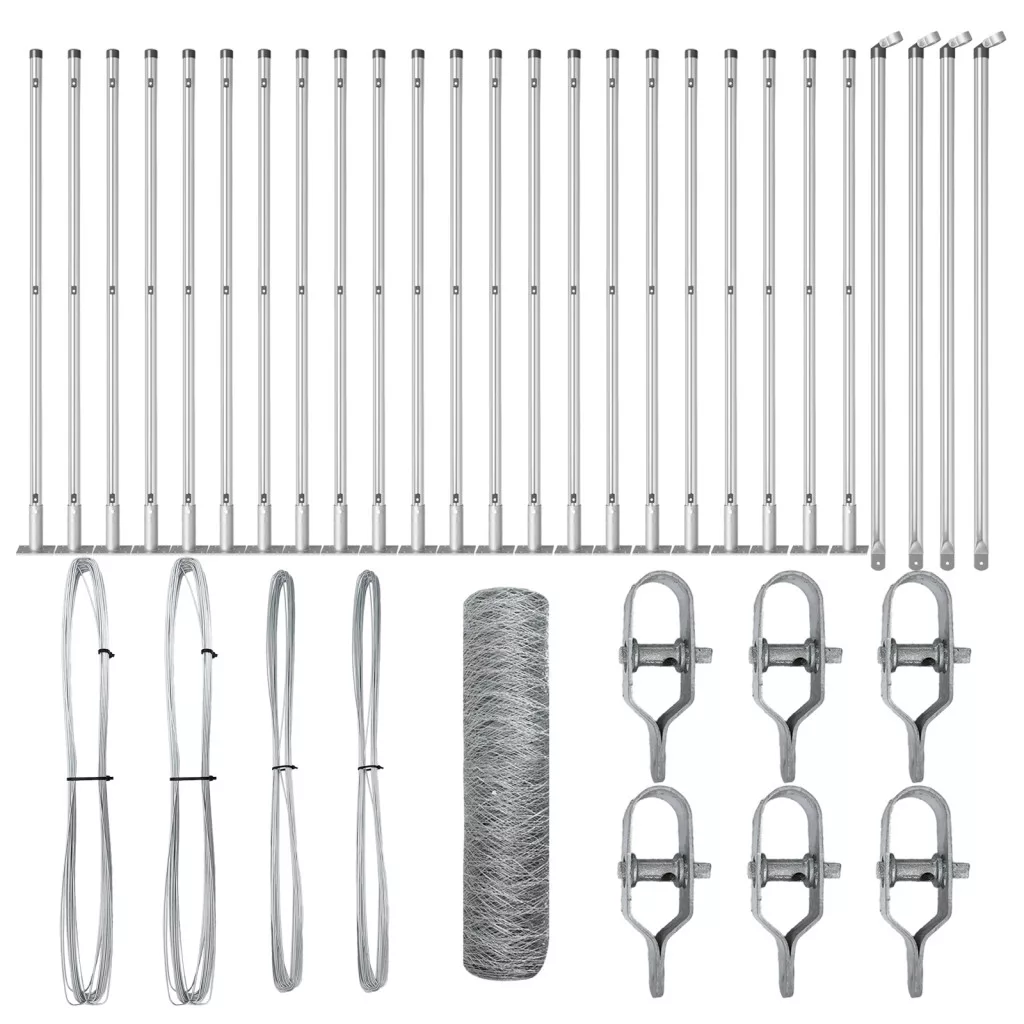 Ez a vidaXL Hatszögletű Kerítés megbízható választás kertek vagy kültéri terek védelmére. Stílusos horganyzott kivitele és robusztus felépítése jól mutat többféle tájban, miközben biztosítja a tartósságot és a biztonságot. Okos választás különböző kültéri felhasználásokra. Tartós Anyag: Horganyzott acélból készült, ez a kerítéskészlet rozsdaálló és bírja a nehéz körülményeket - szilárd védelmet nyújtva ingatlanodnak. Tökéletes Kültéri Használatra: A modern szürke szín jól illeszkedik a kültéri területekhez, miközben masszív akadályt biztosít, így biztonságosabbá teszi a kisállatok számára. Könnyű Összeszerelés: Kényelmes, ezt a kerítést csupán két ember tudja összeállítani, szükséges pár alap szerszám, mint a csavarkulcs és kalapács, így gyorsan felállíthatod a kerítést. Különböző Méretek: Különböző méretekben elérhető, a hatszög kerítés illeszkedik különböző területekre, megfelelve kerítési igényeidnek. Teljes Készlet: Ez a kerítési szett minden szükséges elemet tartalmaz, mint például kerítési oszlopok, huzalok, húzók, és egy hálós henger, így biztosítva, hogy mindent megkapj az egyszerű felállításhoz.