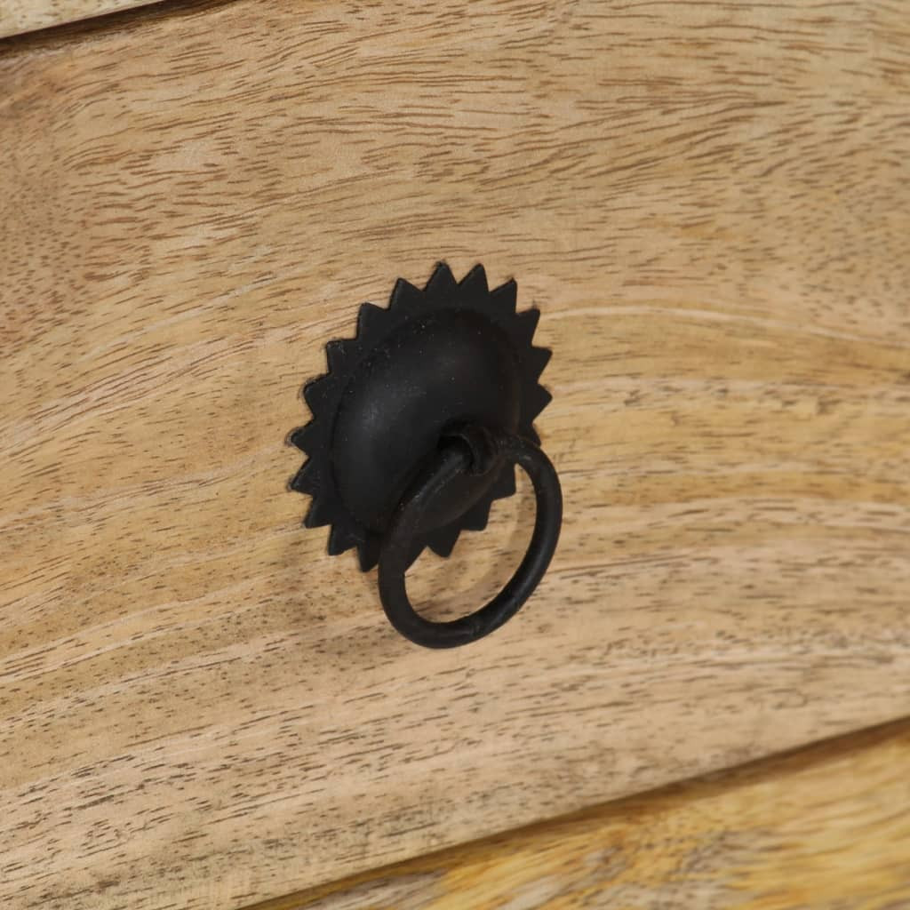 Ez a vintage stílusú fa fiókos íróasztal otthona vagy irodája örökzöld bútordarabja lesz. Az íróasztal tömör mangófából készült, amely stabil, strapabíró és szép, a kézműves munka pedig kiemeli az íróasztal látványos retró stílusát. A tömör mangófa elég erős, hogy elviselje a ránehezedő súlyt, és időtálló is. A kivitelezés minden lépése kivételes gondossággal történt, legyen az a polírozás, a festés vagy a lakkozás. Az íróasztal 5 fiókkal és 1 szekrénnyel rendelkezik, amelyek bőséges helyet biztosítanak kisebb tárgyak, például kulcsok, jegyzettömbök és egyéb apróságok tárolására. A lábas kialakítás vonzó és multifunkcionális. Emellett a levehető asztallapnak köszönhetően az íróasztal könnyen két különálló kisszekrénnyé alakítható. Fontos megjegyzés: A fa erezete és színe darabonként változhat, így minden íróasztal egyedi. A kiszállítás véletlenszerűen történik.