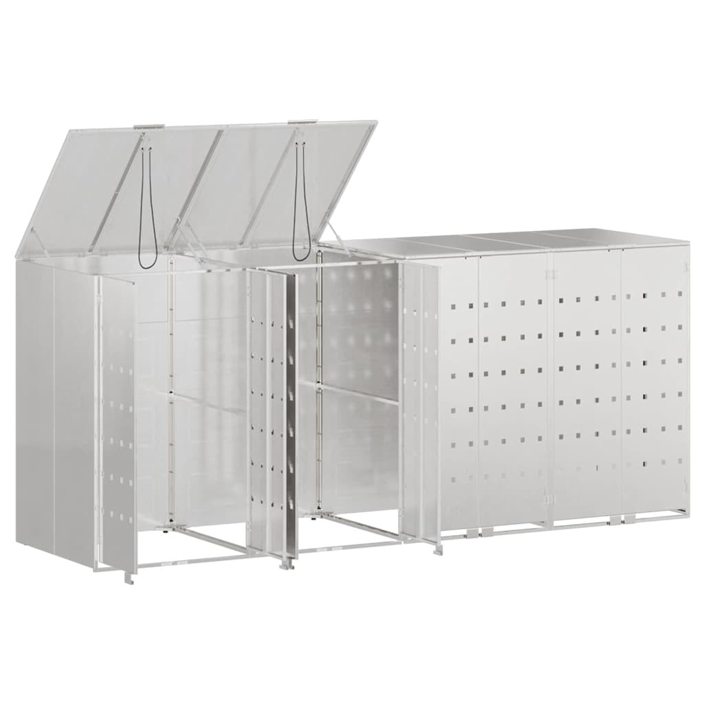 Gurulós kuka tároló 3 kukához Ezüst 340 x 77.5 x 115.5 cm