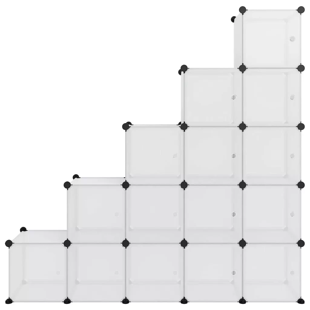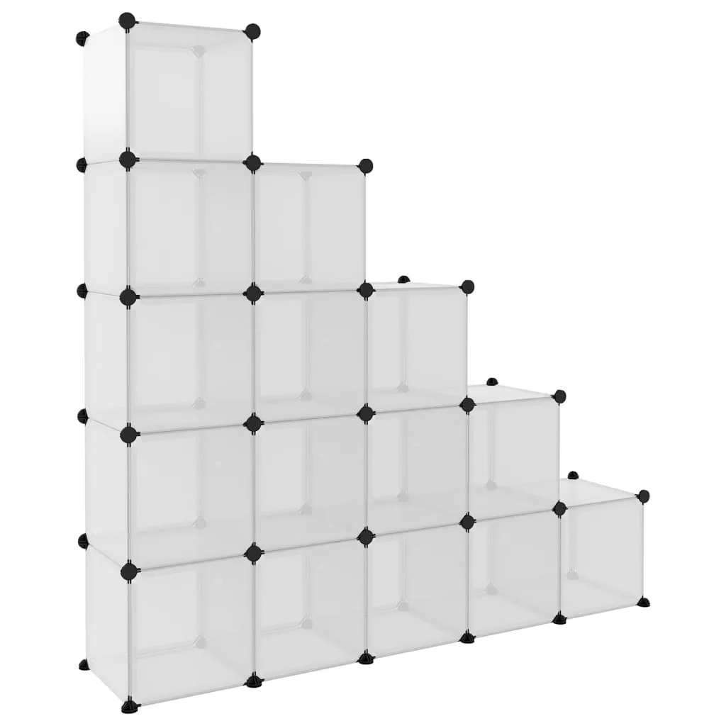 Ezzel a sokoldalú tárolókockával a lehető legjobban használhatja ki a korlátozott helyet, és elégítheti ki különféle tárolási igényeit. Praktikus anyag: A tároló polipropilén műanyag panelekből készült, amelyek vízállóak, és kevés karbantartást igényelnek.Erős és stabil szerkezet: Az acél vázak erős szerkezetet és stabilitást biztosítanak.Felhasználóbarát kialakítás: A könnyű súlyú kialakításnak köszönhetően a tárolópolc a mellékelt fakalapáccsal igénye szerint állítható össze. Használaton kívül a helytakarékosság érdekében a panelek könnyen szétválaszthatók, és egymásra rakhatók.Bőséges tárolóhely: Ez az elemes műanyagszekrény 15 kockát tartalmaz. A tárolóhely megkönnyíti holmija rendezett tárolását.Széleskörű felhasználás: A nagy tárolóhelynek és az egyszerű kialakításnak köszönhetően a tárolóállvány kiváló tárolómegoldás otthon, a kollégiumban és az irodában. Megjegyzés:Egy-egy kocka maximális terhelhetősége 10 kg.
