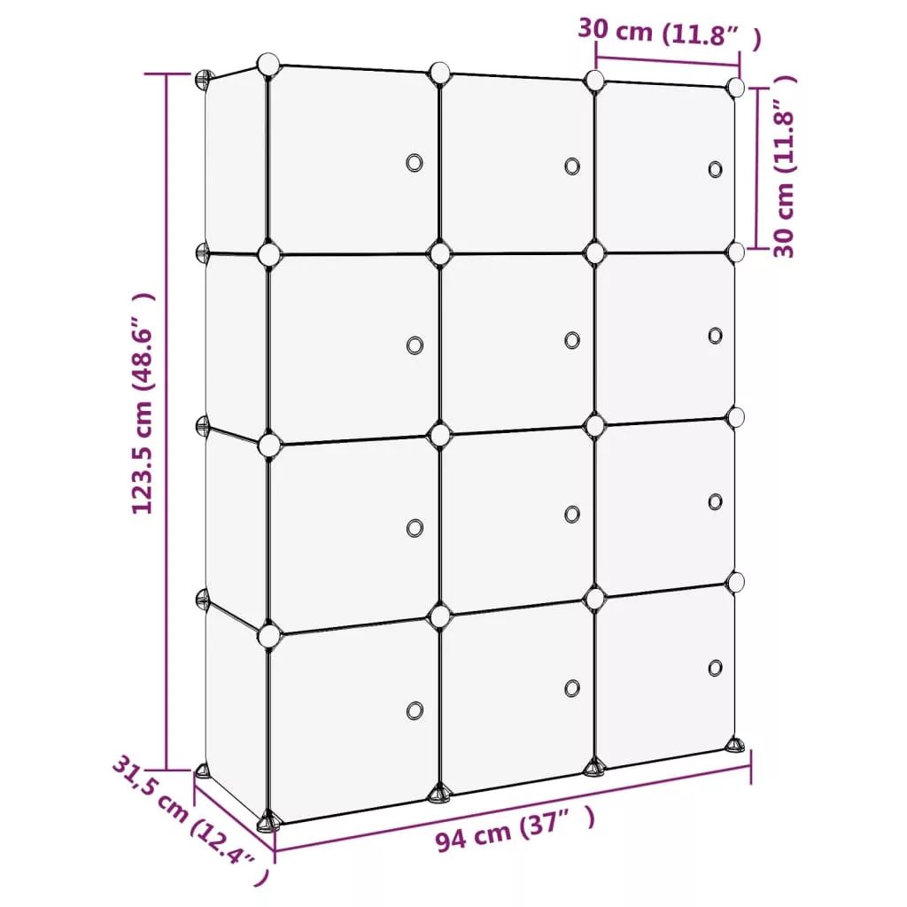 Ezzel a sokoldalú tárolókockával a lehető legjobban használhatja ki a korlátozott helyet, és elégítheti ki különféle tárolási igényeit. Praktikus anyag: A tároló polipropilén műanyag panelekből készült, amelyek vízállóak, és kevés karbantartást igényelnek.Erős és stabil szerkezet: Az acél vázak erős szerkezetet és stabilitást biztosítanak.Felhasználóbarát kialakítás: A könnyű súlyú kialakításnak köszönhetően a tárolópolc a mellékelt fakalapáccsal igénye szerint állítható össze. Használaton kívül a helytakarékosság érdekében a panelek könnyen szétválaszthatók, és egymásra rakhatók.Bőséges tárolóhely: Ez az elemes műanyagszekrény 12 kockát tartalmaz. A tárolóhely megkönnyíti holmija rendezett tárolását.Széleskörű felhasználás: A nagy tárolóhelynek és az egyszerű kialakításnak köszönhetően a tárolóállvány kiváló tárolómegoldás otthon, a kollégiumban és az irodában. Megjegyzés:Egy-egy kocka maximális terhelhetősége 10 kg.