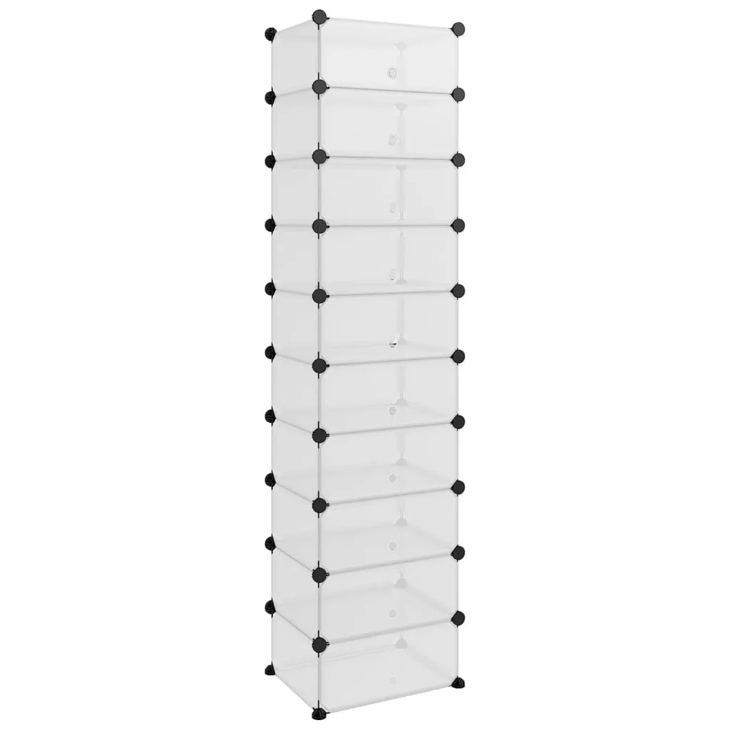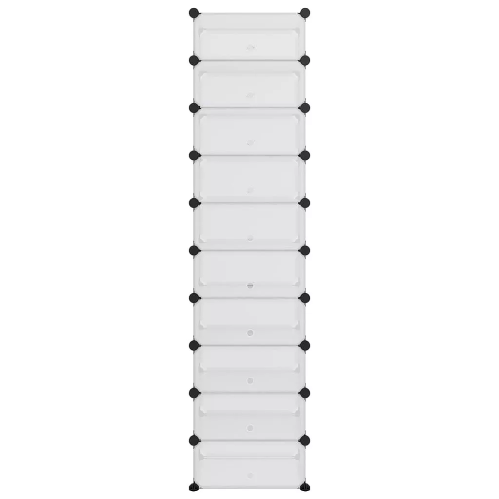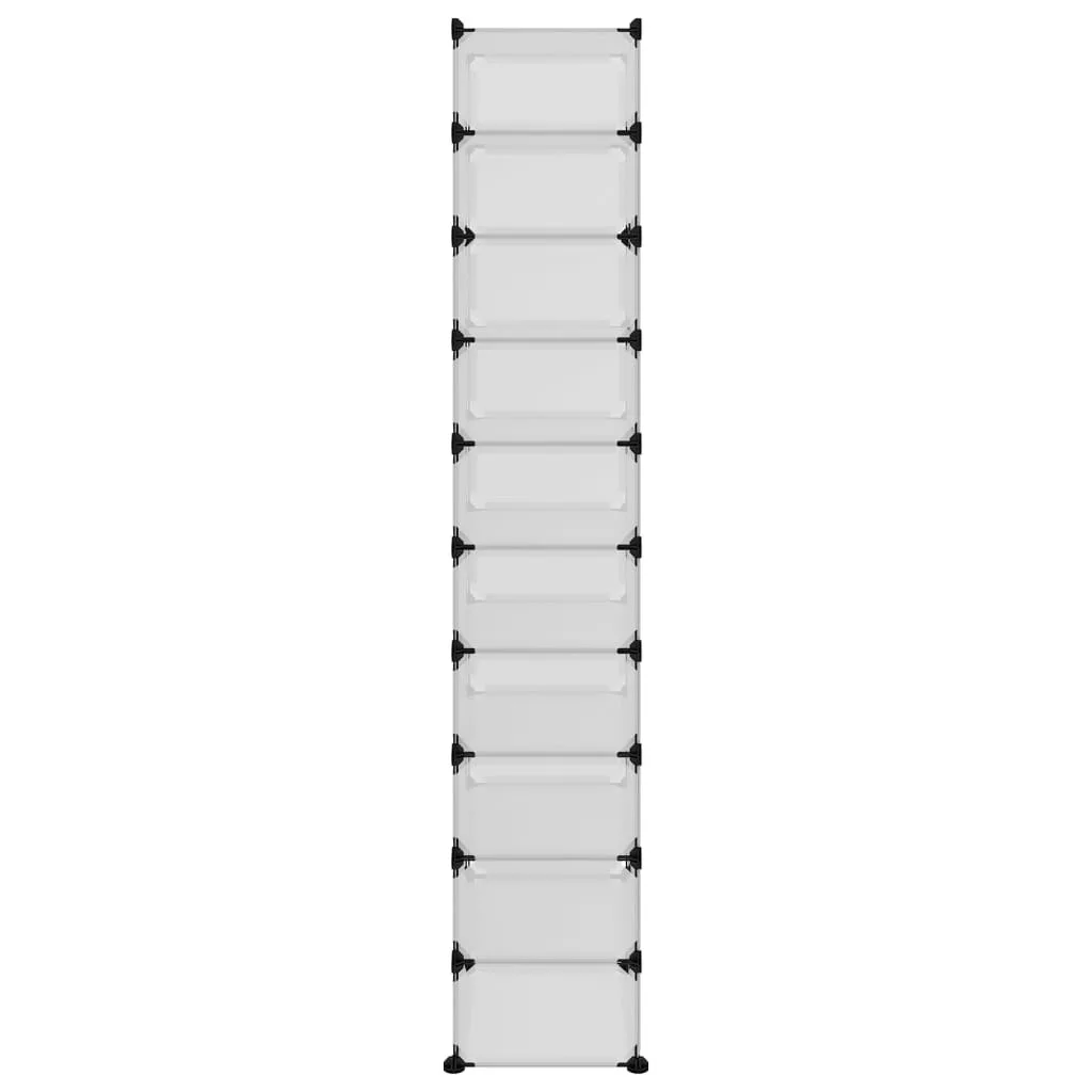 Ez a cipőtartó nagyszerű tárolási megoldást kínál kedvenc lábbelijei és egyéb kiegészítői számára. Praktikus anyag: A cipőszervező polipropilén műanyag panelekből készült, amelyek vízállóak, és kevés karbantartást igényelnek.Erős és stabil szerkezet: Az acél vázak erős szerkezetet és stabilitást biztosítanak.Felhasználóbarát kialakítás: A cipősszekrény kényelmesen összeszerelhető a mellékelt fakalapáccsal. Használaton kívül a helytakarékosság érdekében a panelek könnyen szétválaszthatók, és egymásra rakhatók.Kiváló tároló: A cipőtároló egység bőséges tárolóhelye megkönnyíti holmija elrendezését.Széleskörű felhasználás: A nagy tárolóhelynek és az egyszerű kialakításnak köszönhetően a tárolóállvány kiváló tárolómegoldás otthon, a kollégiumban és az irodában. Megjegyzés:Egy-egy kocka maximális terhelhetősége 10 kg.