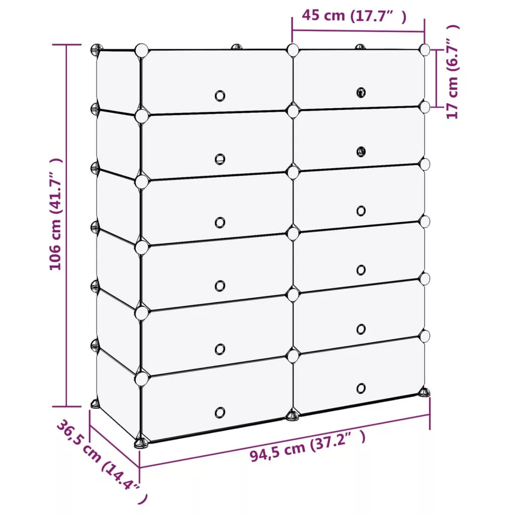 Ez a cipőtartó nagyszerű tárolási megoldást kínál kedvenc lábbelijei és egyéb kiegészítői számára. Praktikus anyag: A cipőszervező polipropilén műanyag panelekből készült, amelyek vízállóak, és kevés karbantartást igényelnek.Erős és stabil szerkezet: Az acél vázak erős szerkezetet és stabilitást biztosítanak.Felhasználóbarát kialakítás: A cipősszekrény kényelmesen összeszerelhető a mellékelt fakalapáccsal. Használaton kívül a helytakarékosság érdekében a panelek könnyen szétválaszthatók, és egymásra rakhatók.Kiváló tároló: A cipőtároló egység bőséges tárolóhelye megkönnyíti holmija elrendezését.Széleskörű felhasználás: A nagy tárolóhelynek és az egyszerű kialakításnak köszönhetően a tárolóállvány kiváló tárolómegoldás otthon, a kollégiumban és az irodában. Megjegyzés:Egy-egy kocka maximális terhelhetősége 10 kg.