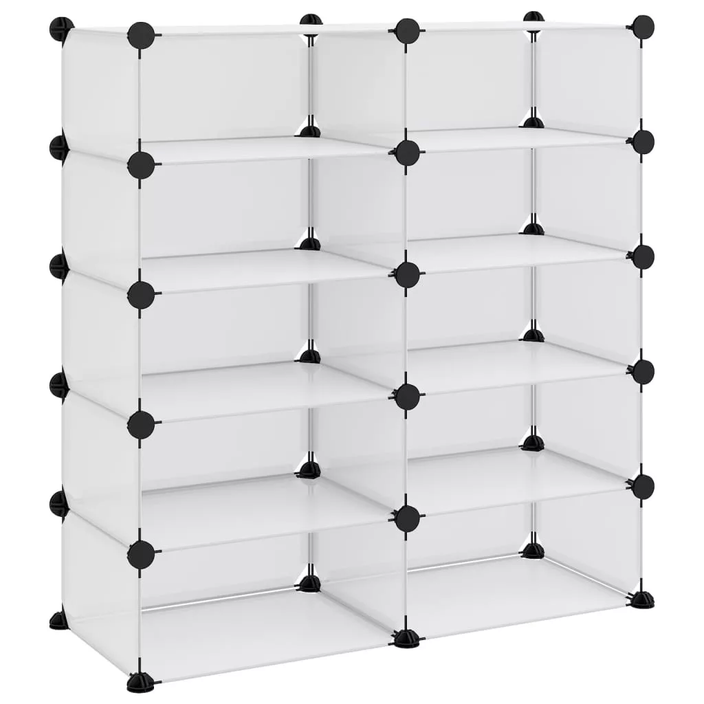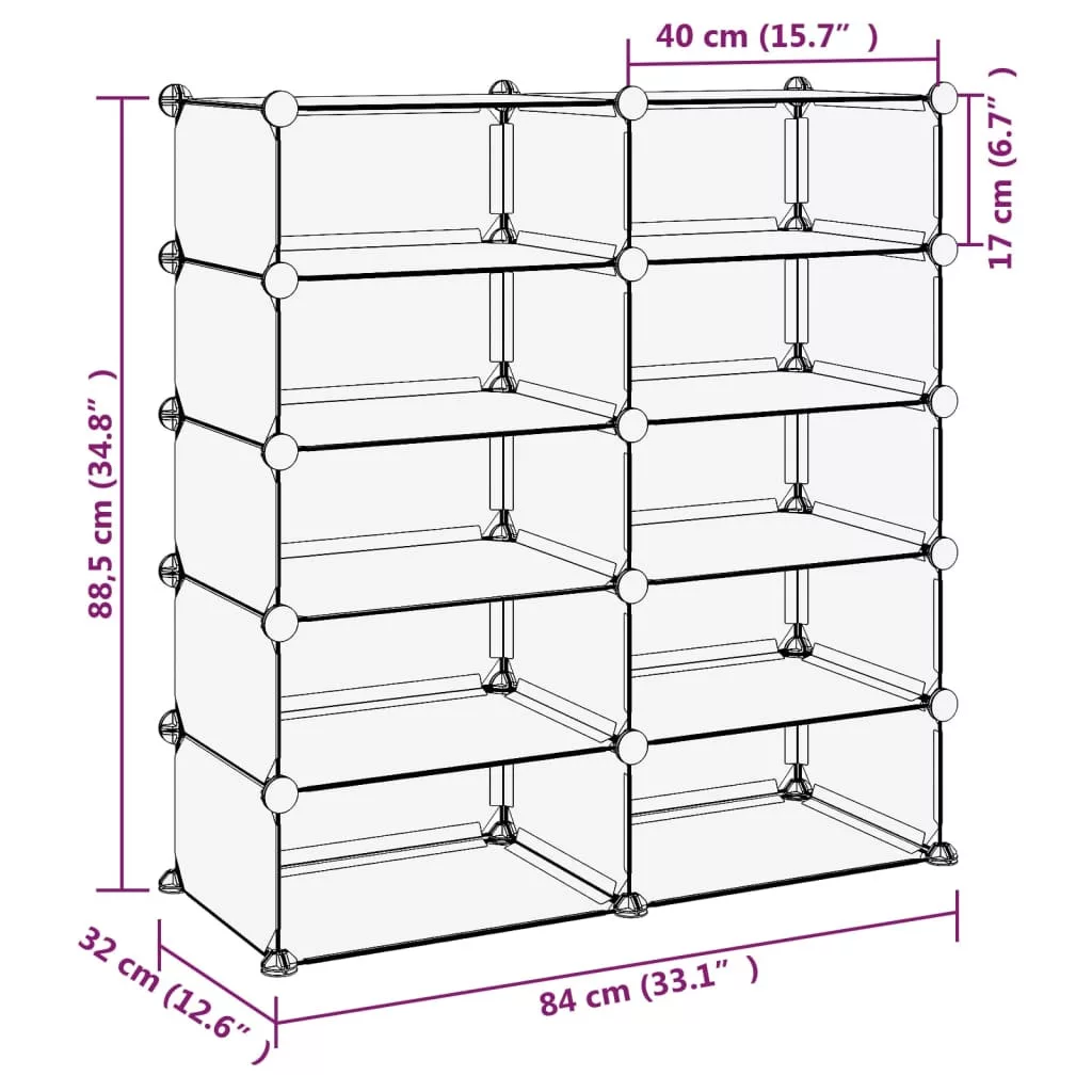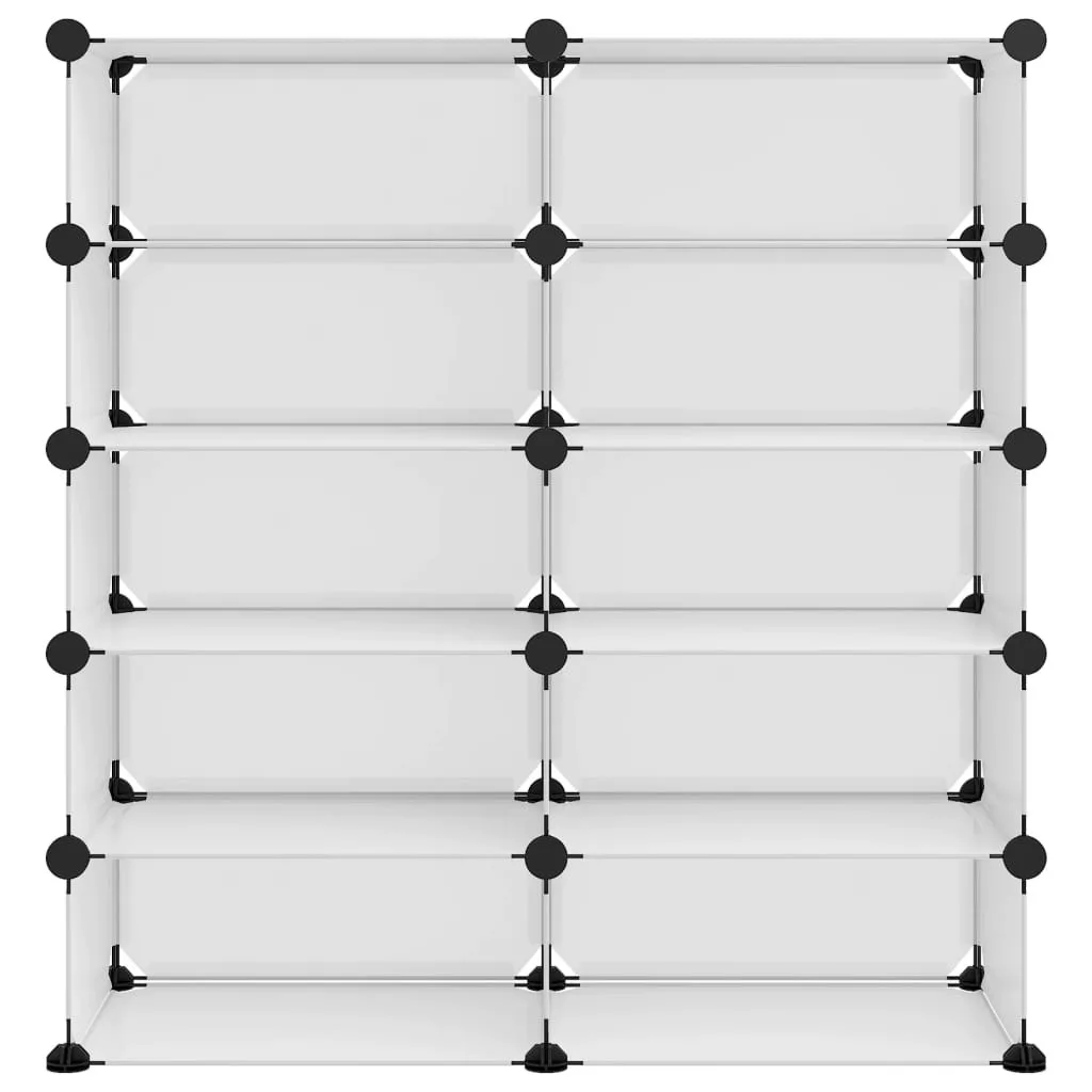 Ez a cipőtartó nagyszerű tárolási megoldást kínál kedvenc lábbelijei és egyéb kiegészítői számára. Praktikus anyag: A cipőszervező polipropilén műanyag panelekből készült, amelyek vízállóak, és kevés karbantartást igényelnek.Erős és stabil szerkezet: Az acél vázak erős szerkezetet és stabilitást biztosítanak.Felhasználóbarát kialakítás: A cipősszekrény kényelmesen összeszerelhető a mellékelt fakalapáccsal. Használaton kívül a helytakarékosság érdekében a panelek könnyen szétválaszthatók, és egymásra rakhatók.Kiváló tároló: A cipőtároló egység bőséges tárolóhelye megkönnyíti holmija elrendezését.Széleskörű felhasználás: A nagy tárolóhelynek és az egyszerű kialakításnak köszönhetően a tárolóállvány kiváló tárolómegoldás otthon, a kollégiumban és az irodában. Megjegyzés:Egy-egy kocka maximális terhelhetősége 10 kg.
