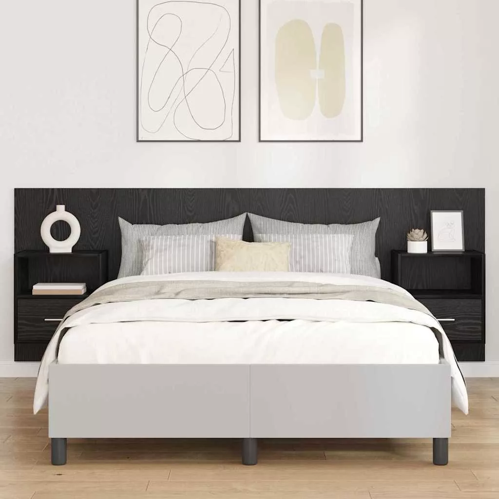 Fejtámla Szekrénnyel fiókkal 3 pcs Fekete tölgy Faanyag