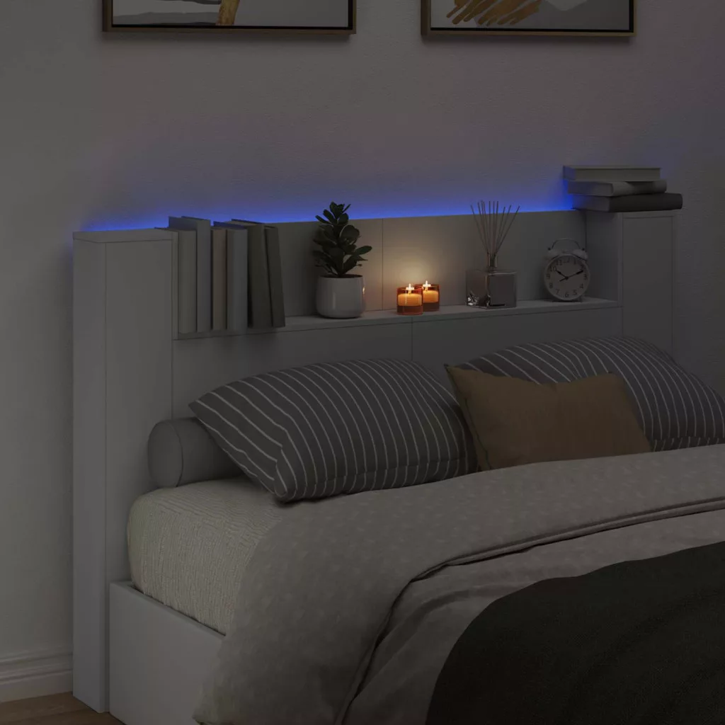 Fejtámla LED -es lámpákkal Fehér 160 x 16,5 x 103,5 cm Faanyag