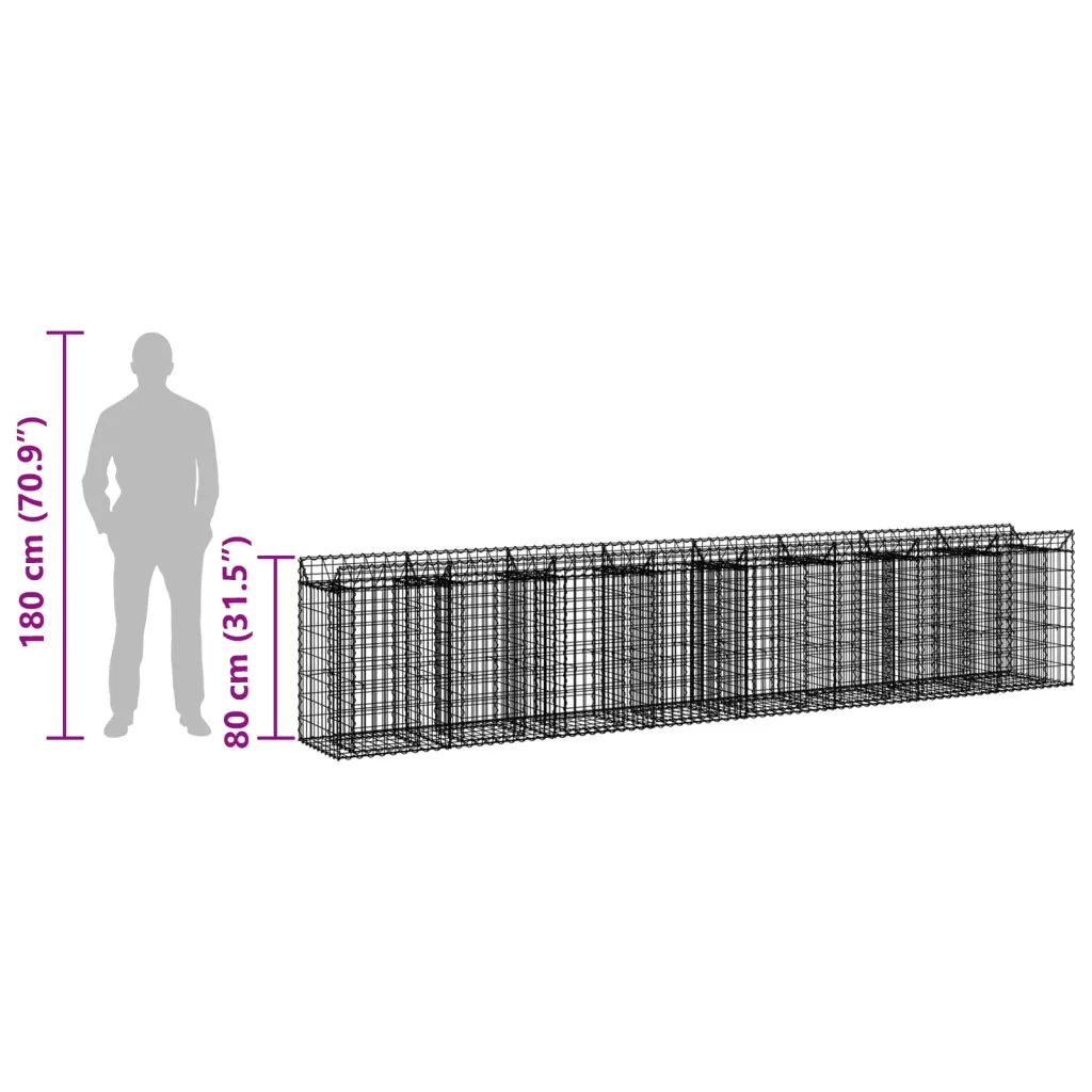 Gabion emelt ágy 3 pcs Ezüst 400 x 50 x 80 cm Horganyzott acél