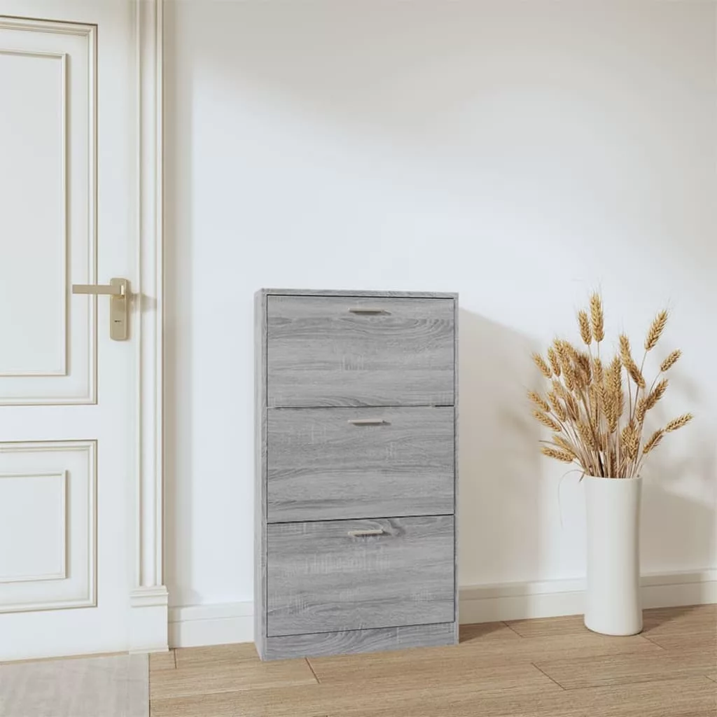 szürke sonoma színű szerelt fa cipősszekrény 59x17x108 cm