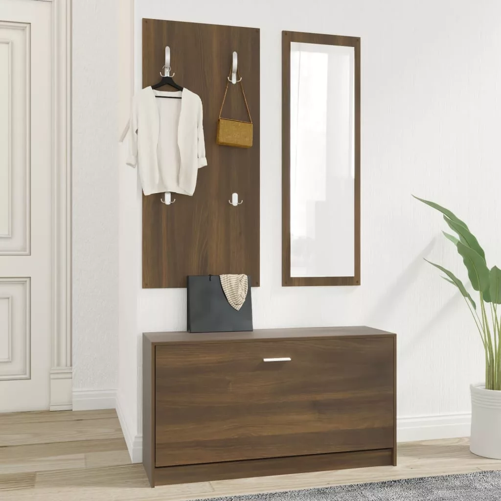 3 az 1-ben barna tölgy szerelt fa cipőszekrény szett
