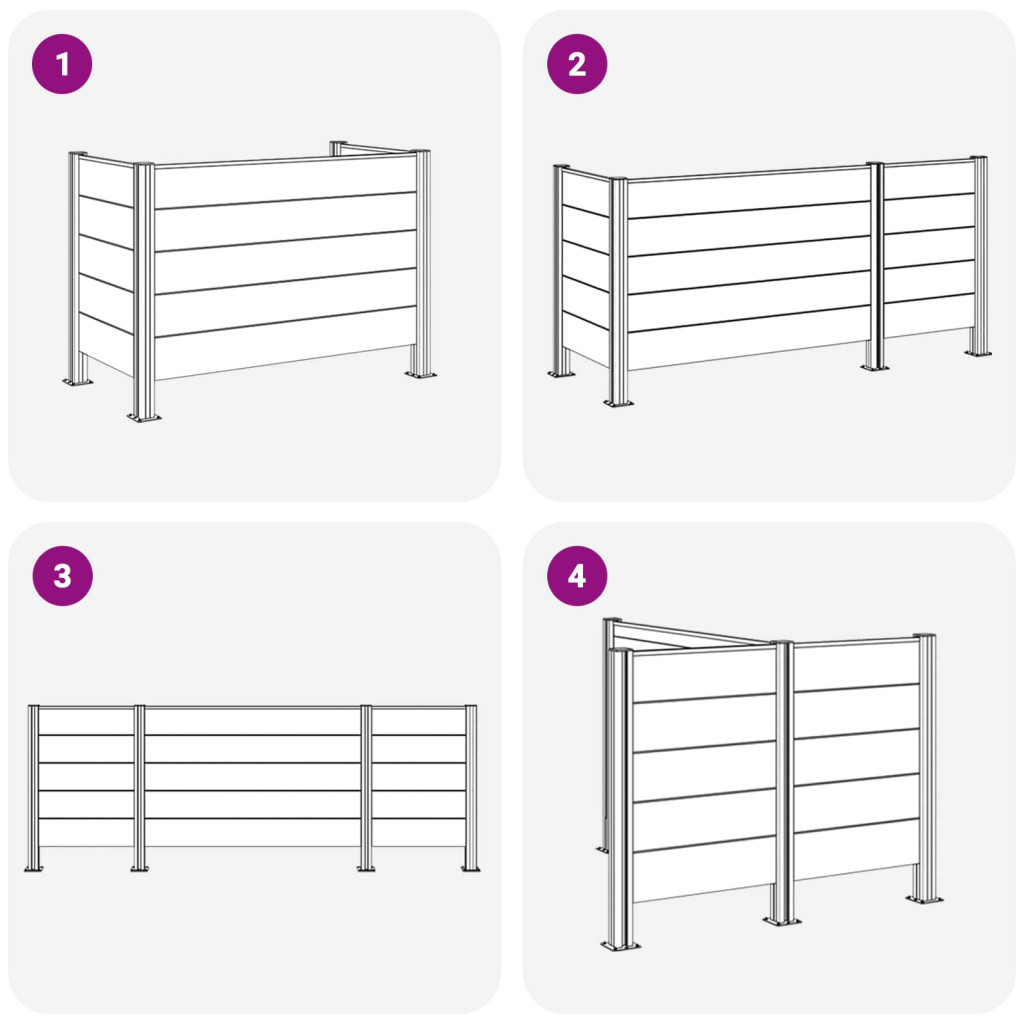WPC-ből és korrózióálló alumíniumból készült, ez a kerítés gond nélkül bírja az időjárást. Moduláris, bővíthető dizájnja praktikus megoldás a kert rendezésére. Tartós anyagok: Ez a kerítés WPC-ből és alumíniumból készült, ami bírja az UV-fényt és az időjárási viszonyokat, megőrzi az szerkezeti épséget kint. Rugalmas dizájn: A bővíthető dizájn miatt a kerítés könnyen állítható vagy meghosszabbítható. Az alumínium alap lehetővé teszi a közvetlen telepítést, biztosítva a stabilitást. Sokoldalú alkalmazás: A kerítés kültéri kertekhez vagy udvarokhoz van tervezve, és hatékonyan elválasztja a hulladékgyűjtő területeket. Könnyű összeszerelés: A moduláris panelek alapvető szerszámokkal, például csavarhúzóval csatlakoznak egymáshoz, így a telepítés pofonegyszerű. Korrózióállóság: Az alumínium elemek rozsda- és oxidációállóak, így bírják a nedvességet és az esőt, megakadályozva a korai elöregedést.