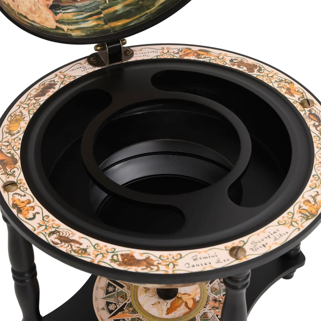 fekete földgömb alakú tömör eukaliptuszfa bárszekrény/bortartó