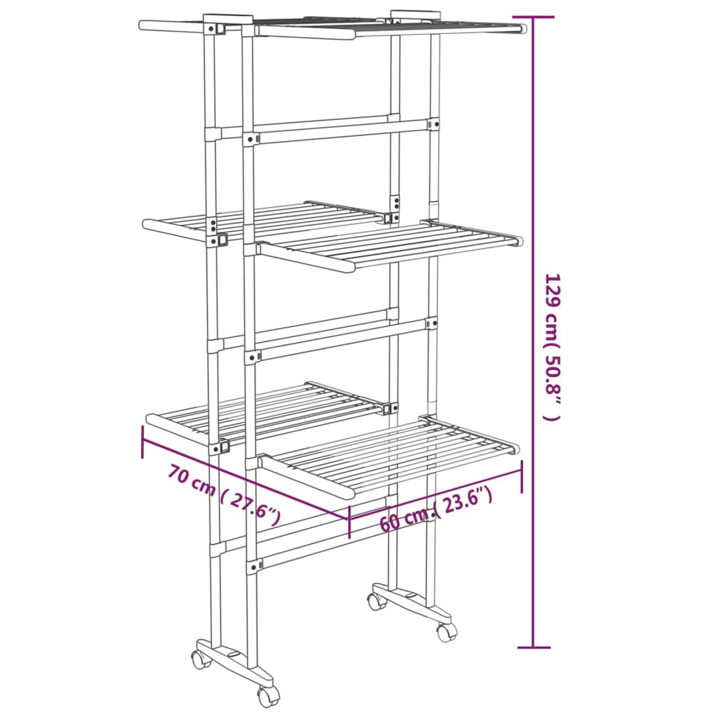 3 szintes ezüst ruhaszárító állvány kerekekkel 60x70x129 cm