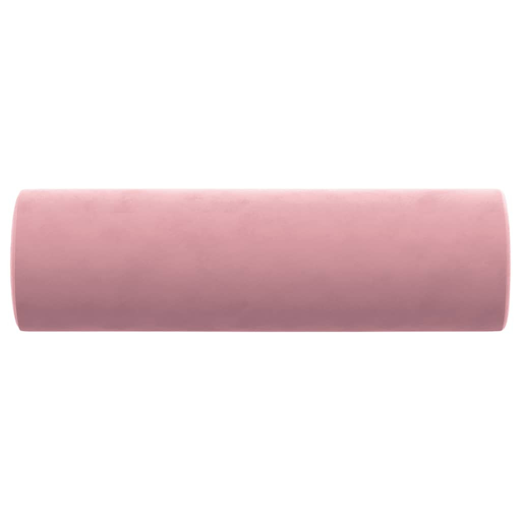 2 db rózsaszín bársony díszpárna Ø15x50 cm