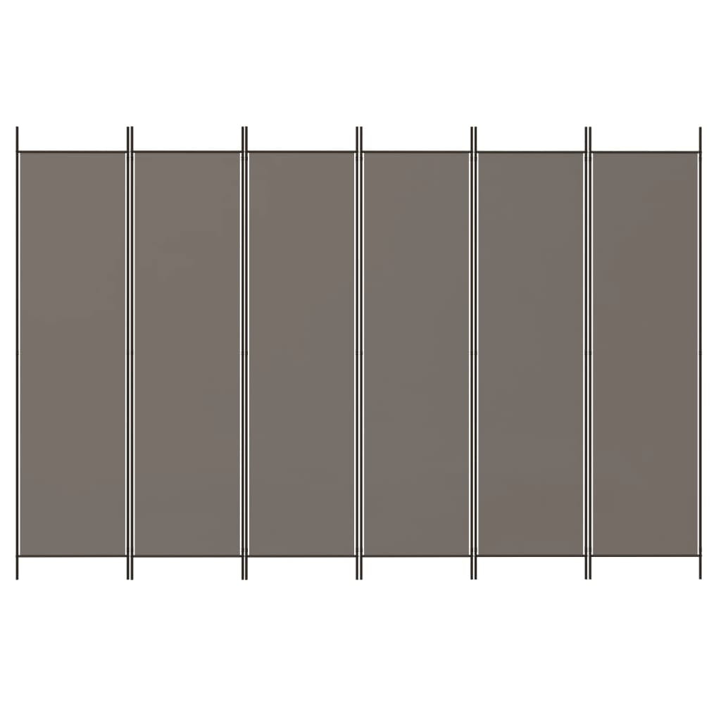 6 paneles antracitszürke szövet térelválasztó 300 x 220 cm