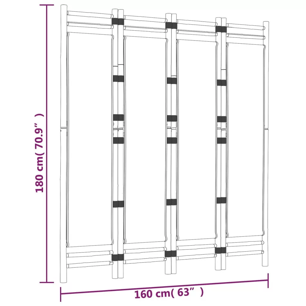 4 paneles összecsukható bambusz és vászon térelválasztó 160 cm