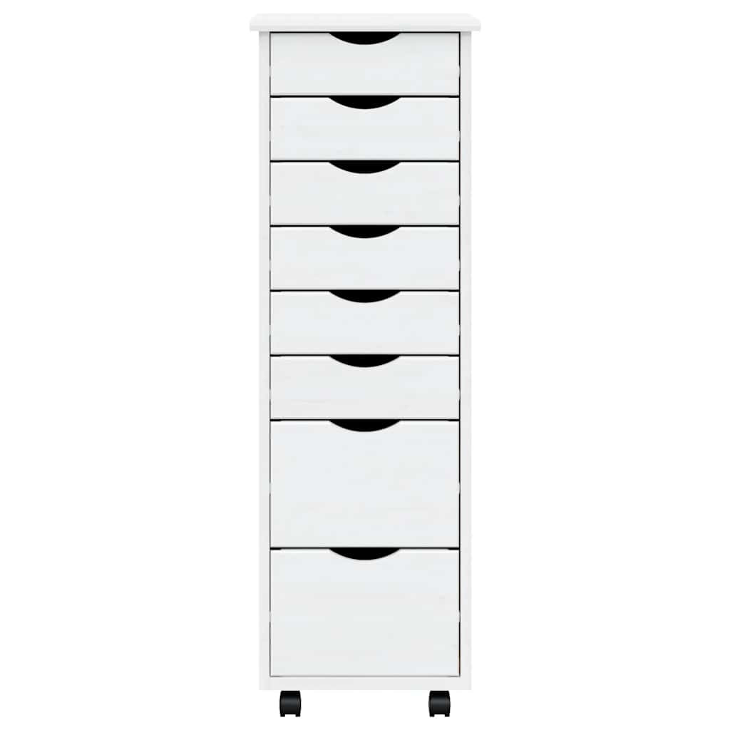 MOSS fehér tömör fenyőfa görgős szekrény fiókokkal