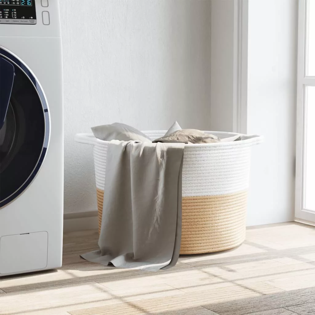Ez a modern stílusú szennyeskosár mindenkit lenyűgöz, és nem csupán praktikus, de igazán szemet gyönyörködtető is lesz bármely helyiségben. Tartós anyag: A tárolókosár szőtt pamutkötelekből készült, amely egy légáteresztő, puha és kivételesen tartós anyag.Helytakarékos kialakítás: Az összecsukható kialakításnak köszönhetően használaton kívül könnyen tárolható, így a mosókosár ideális kis lakóterekbe.Egyszerű szállítás: A két erős fogantyúval ellátott, szőtt kosár kényelmes fogást és egyszerű szállítást biztosít.Sokoldalú kosarak: A ruháskosár sokoldalú. Használható gyerekjátékok, takarók, párnák vagy egyéb otthoni holmik tárolására, elősegítve ezzel, hogy a környezet tiszta és rendezett maradjon. Jó tudni:Javasoljuk, hogy a kosár átvételekor tömje ki például párnákkal, hogy helyreálljon az alakja, vagy szükség esetén használjon vasalót a forma kialakításához.A kosár élettartamának meghosszabbítása érdekében kerülje a gépi mosást, mert alakját vesztheti. Ehelyett inkább óvatosan mossa ki kézzel a kosarat, ha szükséges.