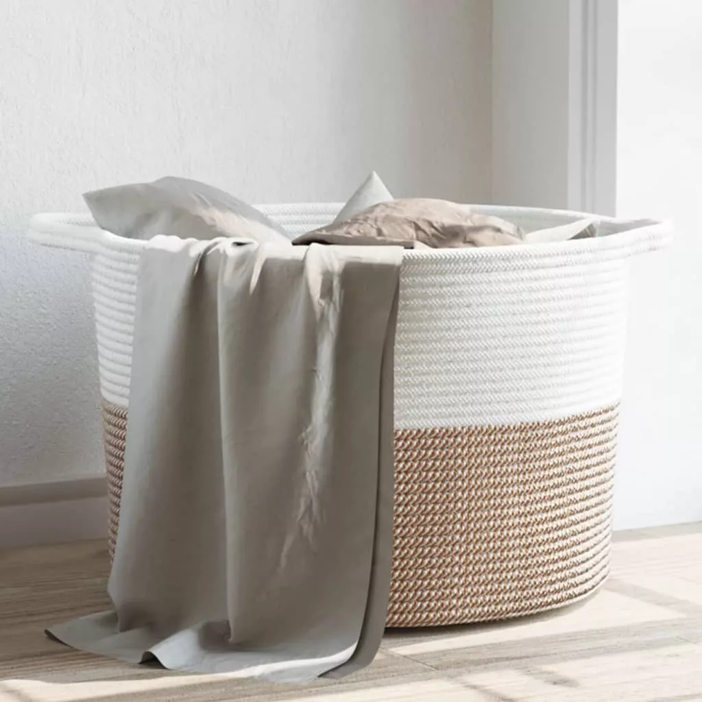 Ez a modern stílusú szennyeskosár mindenkit lenyűgöz, és nem csupán praktikus, de igazán szemet gyönyörködtető is lesz bármely helyiségben. Tartós anyag: A tárolókosár szőtt pamutkötelekből készült, amely egy légáteresztő, puha és kivételesen tartós anyag.Helytakarékos kialakítás: Az összecsukható kialakításnak köszönhetően használaton kívül könnyen tárolható, így a mosókosár ideális kis lakóterekbe.Egyszerű szállítás: A két erős fogantyúval ellátott, szőtt kosár kényelmes fogást és egyszerű szállítást biztosít.Sokoldalú kosarak: A ruháskosár sokoldalú. Használható gyerekjátékok, takarók, párnák vagy egyéb otthoni holmik tárolására, elősegítve ezzel, hogy a környezet tiszta és rendezett maradjon. Jó tudni:Javasoljuk, hogy a kosár átvételekor tömje ki például párnákkal, hogy helyreálljon az alakja, vagy szükség esetén használjon vasalót a forma kialakításához.A kosár élettartamának meghosszabbítása érdekében kerülje a gépi mosást, mert alakját vesztheti. Ehelyett inkább óvatosan mossa ki kézzel a kosarat, ha szükséges.
