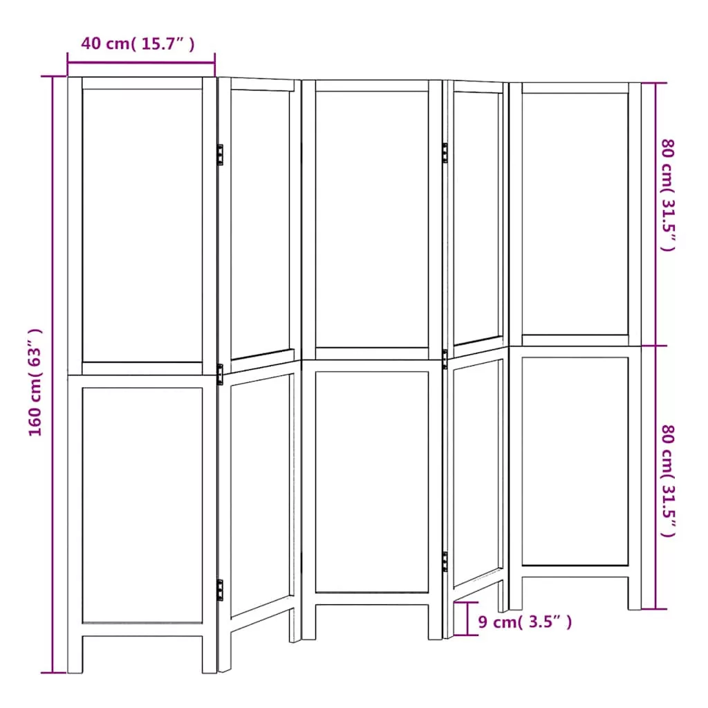 5 paneles fehér tömör császárfa térelválasztó