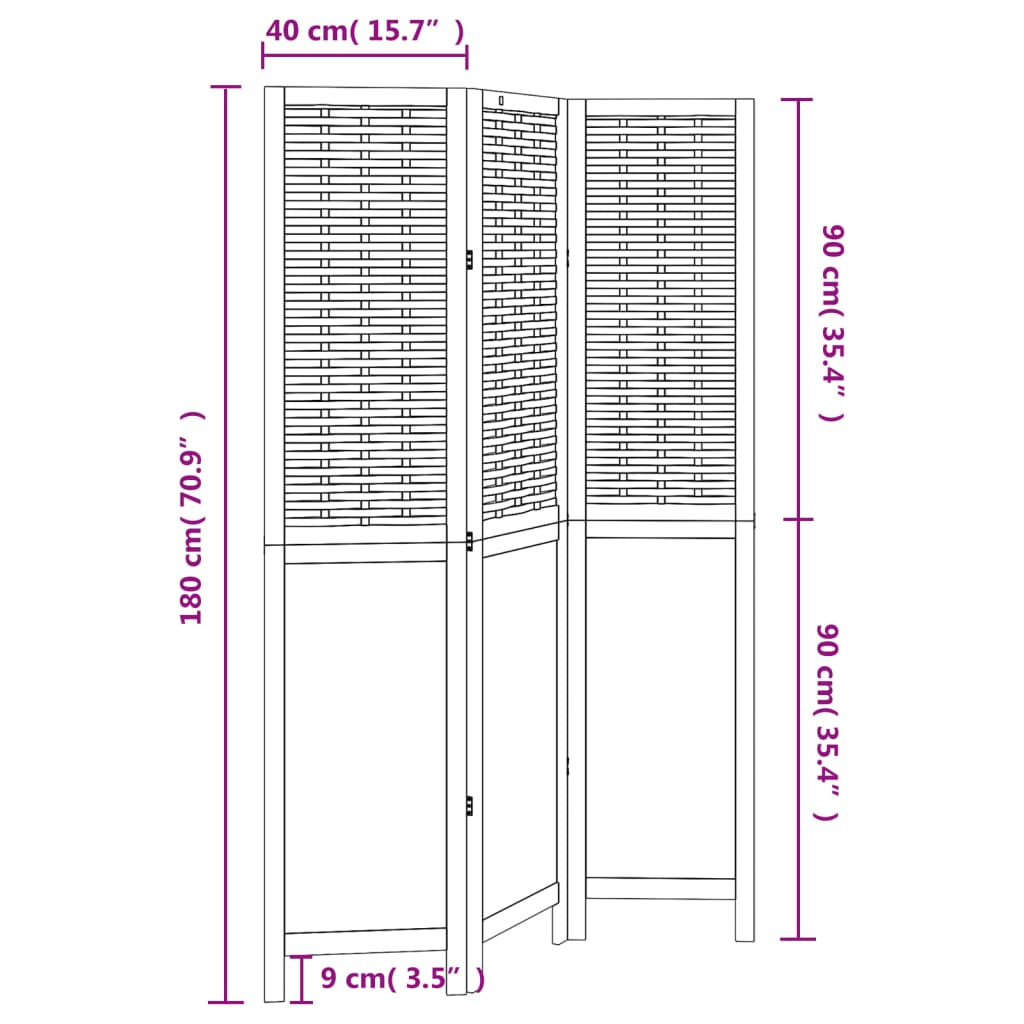 3 paneles sötétbarna tömör császárfa térelválasztó