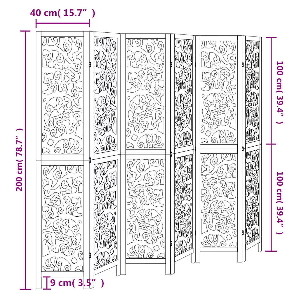 Vigyen eleganciát és szemet gyönyörködtető dekorációt a terébe ezzel a bájos térelválasztóval. Tartós és könnyen tisztítható: A térelválasztó szerelt fából készült, így könnyen tisztítható és tartós.Stabil váz: A tömör császárfa váz szilárdságot és stabilitást biztosít. A tömör császárfa egy gyönyörű természetes anyag. A császárfa rendkívül ellenálló a rovarokkal és a korhadással szemben.Rugalmas és könnyen összecsukható: Minden térelválasztó 3 fémpánttal, a felső és alsó panelek pedig rejtett, 2 az 1-ben zsanérokkal lettek összekötve. Így a térelválasztó panel a helytakarékosság érdekében könnyen összecsukható bizonyos mértékig, az Ön igényei szerint.Többcélú: A térelválasztó kiválóan alkalmas arra, hogy privát teret alakítson ki hálószobájában, nappalijában, irodájában, és más belső terekben. Az ablak elé is elhelyezheti, hogy megelőzze az intenzív napfény beáramlását.Mutatós megjelenés: Ez a kifinomult megjelenésű, összecsukható térelválasztó karakteres megjelenést és díszítést kölcsönöz a térnek. Figyelem:Csak beltéri használatra.