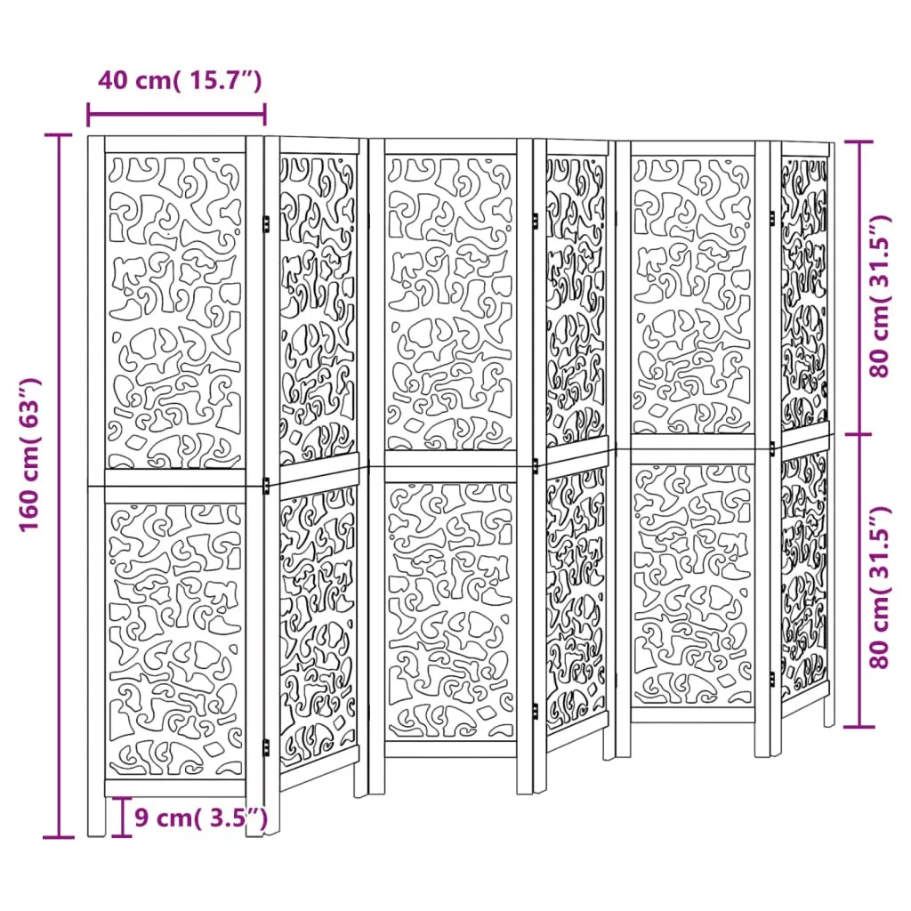 6 paneles fekete tömör császárfa térelválasztó