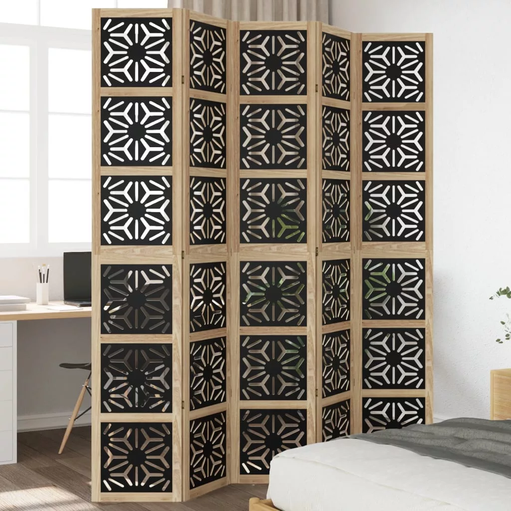 5 paneles barna és fekete tömör császárfa térelválasztó