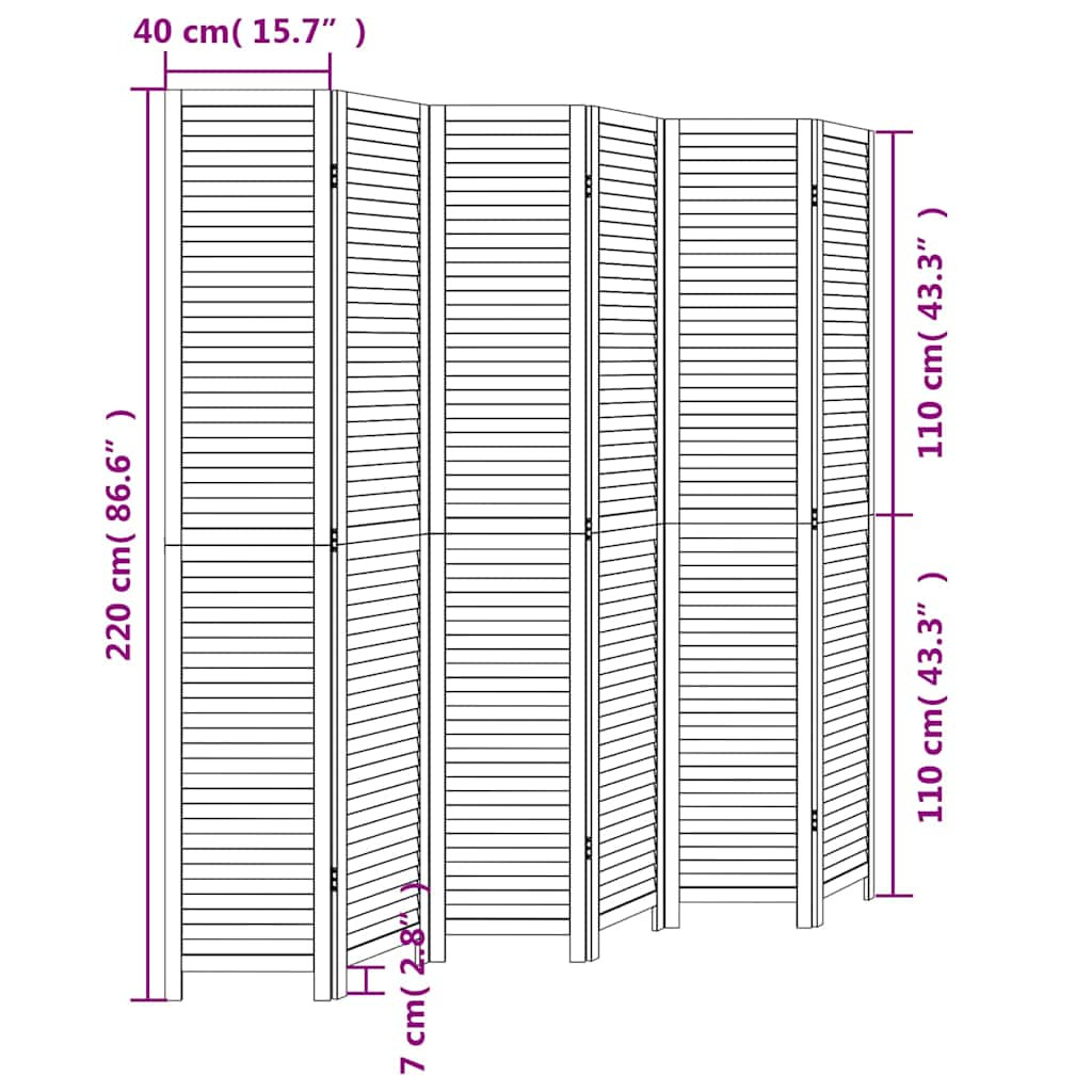 6 paneles fehér tömör császárfa térelválasztó