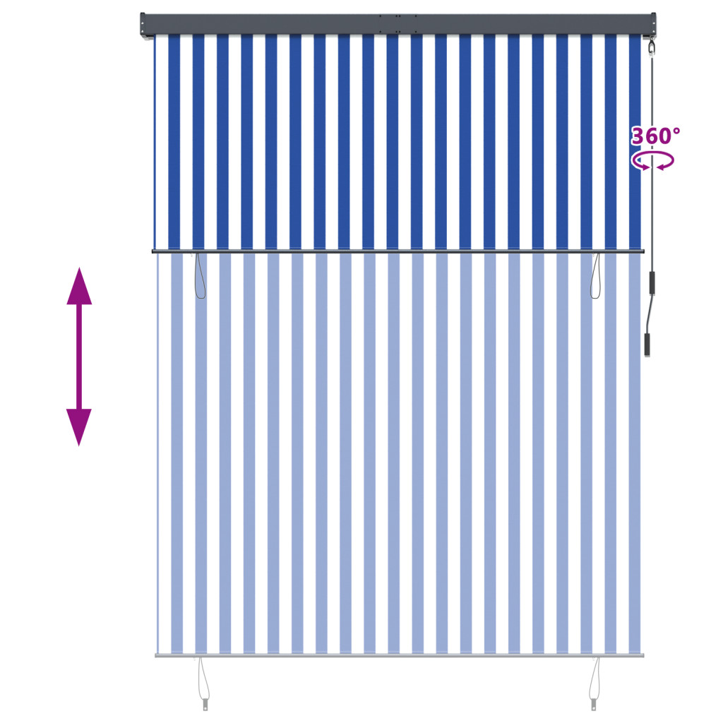 Kültéri Rolós Árnyék Csíkos Állítható Kék és fehér 200 x 250 cm szövet