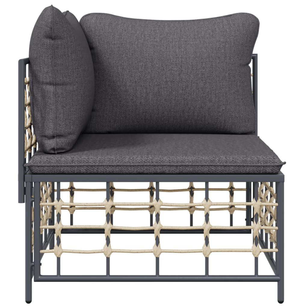 sötétszürke polyrattan kerti sarokkanapé párnával