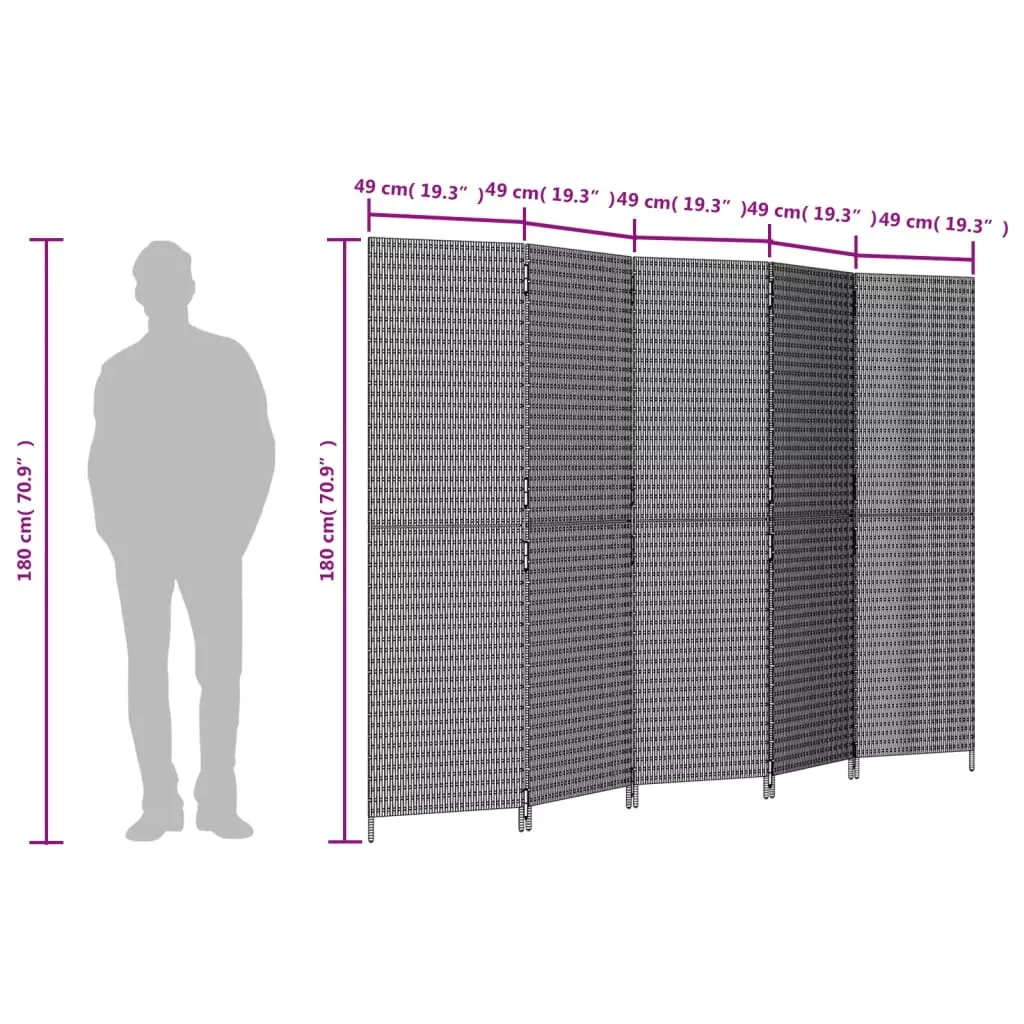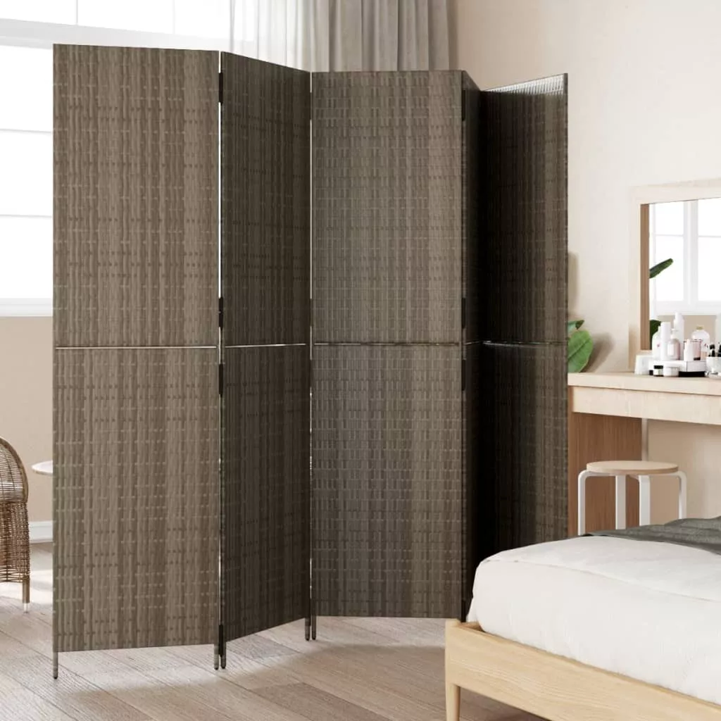 Ékesítse otthonát, és ossza fel terét ezzel a polyrattan térelválasztóval. Tartós és könnyen tisztítható: Minden belátásgátló panel időjárásálló és tartós polyrattan csíkokból lett szőve, így gyönyörű megjelenést biztosít, és könnyen tisztítható.Stabil váz: A porszórt acél váz erős szerkezetet és stabilitást biztosít.Rugalmas és könnyen összecsukható: Minden válaszfalat horganyzott zsanérok kötnek össze, és bizonyos mértékig a helytakarékosság érdekében igény szerint könnyedén összehajthatóak.Többcélú: A térelválasztó paraván bel- és kültéren egyaránt kiválóan alkalmas privát terek kialakítására, például a hálószobában, a nappaliban, az irodában stb. Az ablak elé is elhelyezheti, hogy megelőzze az intenzív napfény beáramlását. Fontos jegyzet:Ahhoz, hogy teljesen laposra lehessen hajtani, szét kell szerelni a horganyzott zsanérokat.
