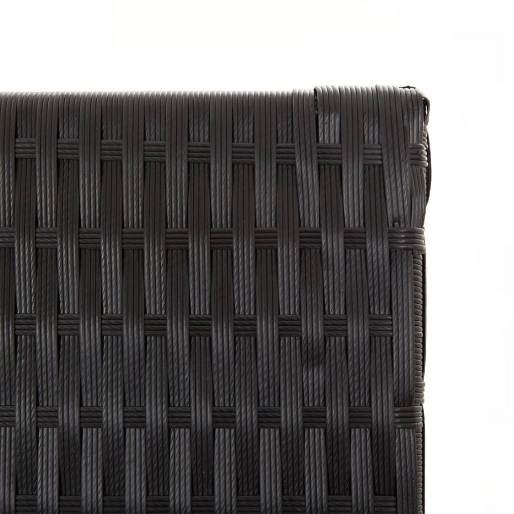 Ékesítse otthonát, és ossza fel terét ezzel a polyrattan térelválasztóval. Tartós és könnyen tisztítható: Minden belátásgátló panel időjárásálló és tartós polyrattan csíkokból lett szőve, így gyönyörű megjelenést biztosít, és könnyen tisztítható.Stabil váz: A porszórt acél váz erős szerkezetet és stabilitást biztosít.Rugalmas és könnyen összecsukható: Minden válaszfalat horganyzott zsanérok kötnek össze, és bizonyos mértékig a helytakarékosság érdekében igény szerint könnyedén összehajthatóak.Többcélú: A térelválasztó paraván bel- és kültéren egyaránt kiválóan alkalmas privát terek kialakítására, például a hálószobában, a nappaliban, az irodában stb. Az ablak elé is elhelyezheti, hogy megelőzze az intenzív napfény beáramlását. Fontos jegyzet:Ahhoz, hogy teljesen laposra lehessen hajtani, szét kell szerelni a horganyzott zsanérokat.