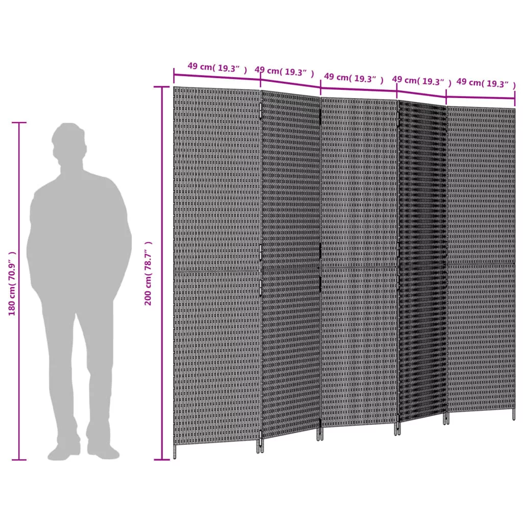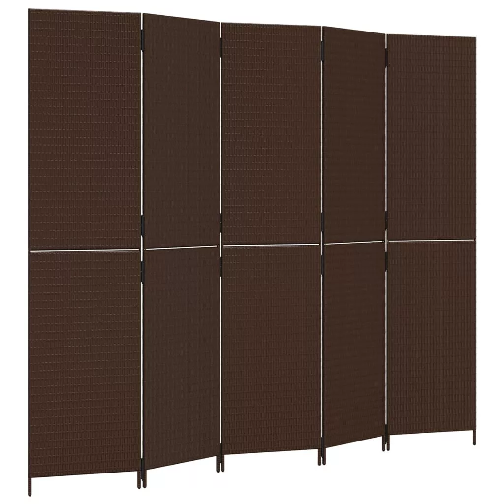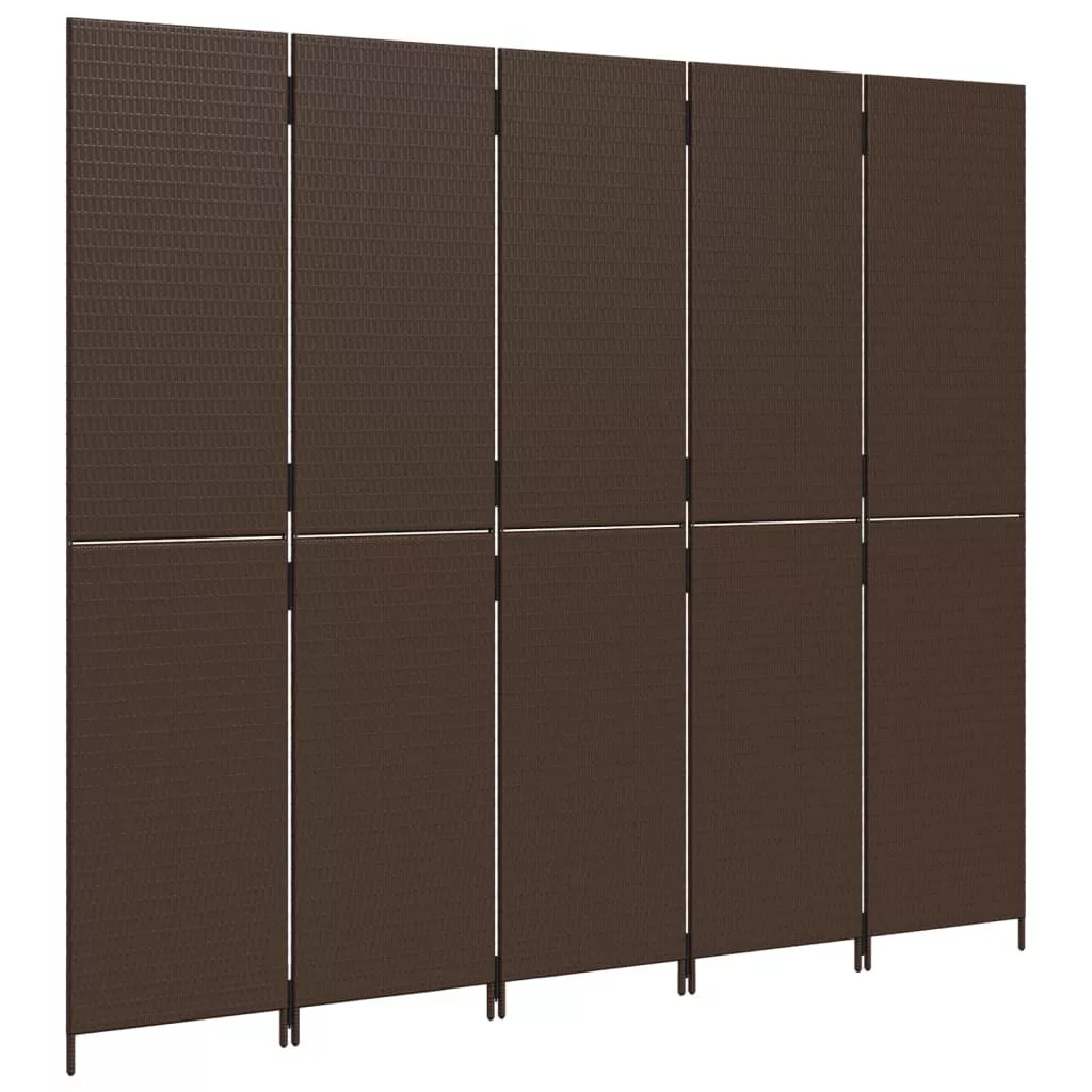 barna 5-paneles polyrattan térelválasztó