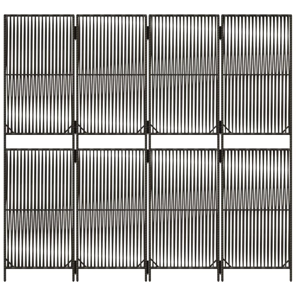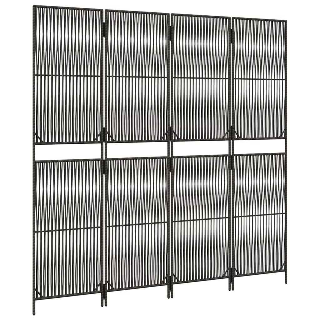 Ékesítse otthonát, és ossza fel terét ezzel a polyrattan térelválasztóval. Tartós és könnyen tisztítható: Minden belátásgátló panel polyrattanból készült, ami időjárásálló, tartós és könnyen tisztítható.Stabil váz: A porszórt acél váz erős szerkezetet és stabilitást biztosít.Rugalmas és könnyen összecsukható: Minden válaszfalat horganyzott zsanérok kötnek össze, és bizonyos mértékig a helytakarékosság érdekében igény szerint könnyedén összehajthatóak.Vonalszőtt kialakítás: A vonalszőtt kialakításnak köszönhetően ez a szobaparaván stílusos és művészi úton garantálja magánélete védelmét, ugyanakkor a helyiségnek szellőzést és világosságot biztosít.Többcélú: A térelválasztó paraván bel- és kültéren egyaránt kiválóan alkalmas privát terek kialakítására, például a hálószobában, a nappaliban, az irodában stb. Az ablak elé is elhelyezheti, hogy megelőzze az intenzív napfény beáramlását. Fontos jegyzet:Ahhoz, hogy teljesen laposra lehessen hajtani, szét kell szerelni a horganyzott zsanérokat.