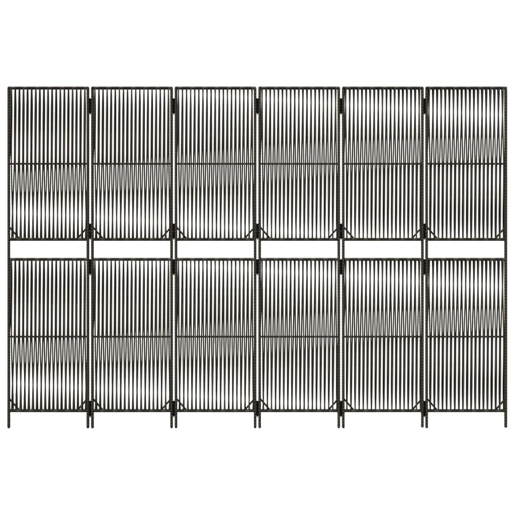 Ékesítse otthonát, és ossza fel terét ezzel a polyrattan térelválasztóval. Tartós és könnyen tisztítható: Minden belátásgátló panel polyrattanból készült, ami időjárásálló, tartós és könnyen tisztítható.Stabil váz: A porszórt acél váz erős szerkezetet és stabilitást biztosít.Rugalmas és könnyen összecsukható: Minden válaszfalat horganyzott zsanérok kötnek össze, és bizonyos mértékig a helytakarékosság érdekében igény szerint könnyedén összehajthatóak.Vonalszőtt kialakítás: A vonalszőtt kialakításnak köszönhetően ez a szobaparaván stílusos és művészi úton garantálja magánélete védelmét, ugyanakkor a helyiségnek szellőzést és világosságot biztosít.Többcélú: A térelválasztó paraván bel- és kültéren egyaránt kiválóan alkalmas privát terek kialakítására, például a hálószobában, a nappaliban, az irodában stb. Az ablak elé is elhelyezheti, hogy megelőzze az intenzív napfény beáramlását. Fontos jegyzet:Ahhoz, hogy teljesen laposra lehessen hajtani, szét kell szerelni a horganyzott zsanérokat.