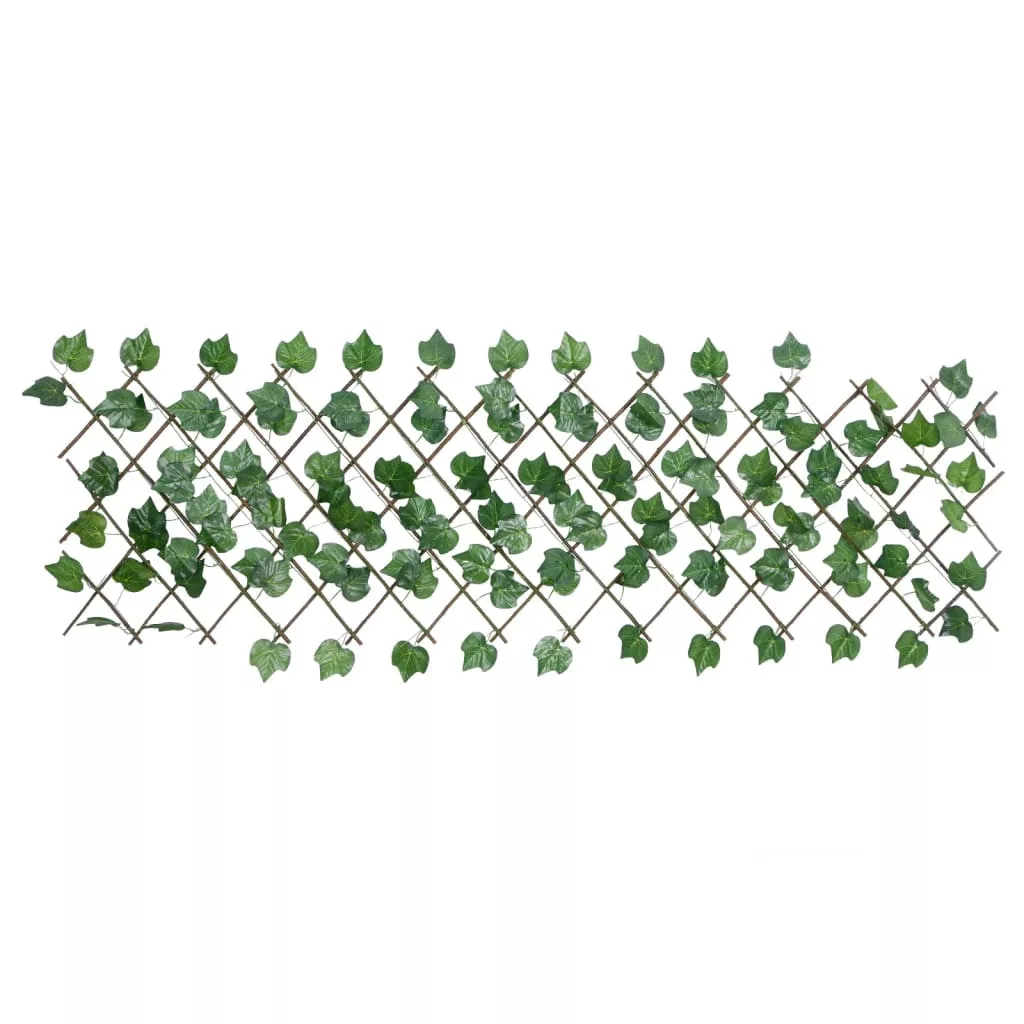 Ezzel a műszőlőlevélráccsal kerti falakat díszíthet, és privát kültéri környezetet alakíthat ki. Magánélet és dekoráció: Ez a műszőlőlevélrács magánéletet és biztonságot biztosít kültéri környezete számára, és nagyszerű lehetőség a ház díszítésére, mivel elzárja az erős napfényt, miközben biztosítja a levegő természetes áramlását.Bővíthető: A bővíthető kerítés szélessége 70 és 190 cm között, magassága pedig 30 és 60 cm között állítható. Saját igényeinek megfelelően állíthatja be.Masszív felépítés: A műszőlőlevél-paraván tartós fából készült, így masszív szerkezetű, és hosszú ideig használható.Könnyen karbantartható: Ezek a levelek PVC-ből készültek, valósághűek és természetesek, így nem igényelnek öntözést vagy rovarirtást, és víztömlővel könnyen tisztíthatók.Széleskörű felhasználás: A szőlőlevél-kerítés rugalmas, és bármilyen felületen használható. Tökéletes falak vagy kertje egyéb csúnya részeinek letakarására.