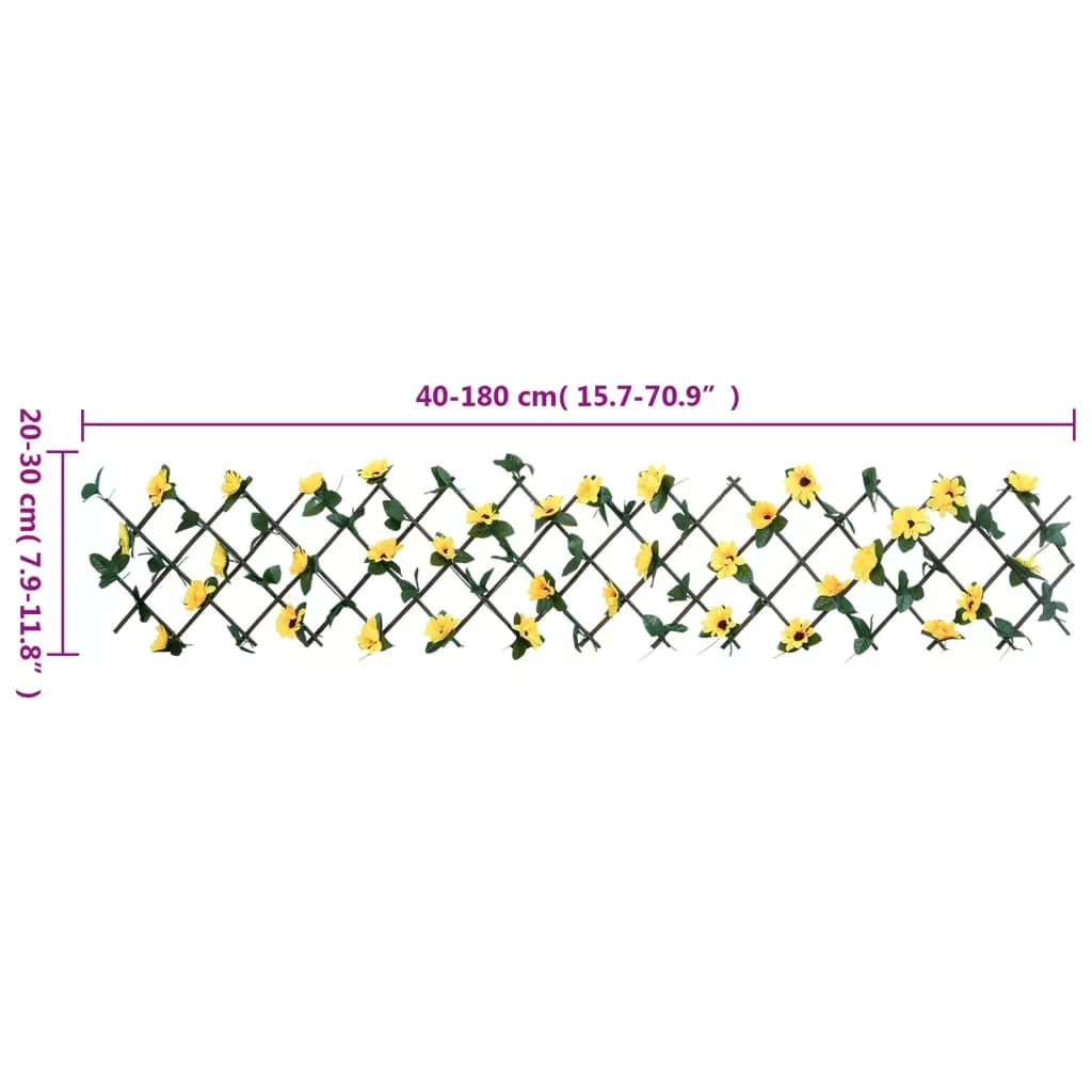 Ezzel a műborostyánráccsal kerti falakat díszíthet, és privát kültéri környezetet alakíthat ki. Magánélet és dekoráció: Ez a műborostyánrács magánéletet és biztonságot biztosít kültéri környezete számára, és nagyszerű lehetőség a ház díszítésére, mivel elzárja az erős napfényt, miközben biztosítja a levegő természetes áramlását.Bővíthető: A bővíthető kerítés szélessége 40 és 180 cm között, magassága pedig 20 és 30 cm között állítható. Saját igényeinek megfelelően állíthatja be.Masszív felépítés: A műborostyán-paraván tartós fából készült, így masszív szerkezetű, és hosszú ideig használható.Könnyen karbantartható: A valósághű és természetes virágok és levelek PVC-ből készültek, így nem igényelnek öntözést vagy rovarirtást, és víztömlővel könnyen tisztíthatók.Széleskörű felhasználás: A borostyánkerítés rugalmas, és bármilyen felületen használható. Tökéletes falak vagy kertje egyéb csúnya részeinek letakarására.
