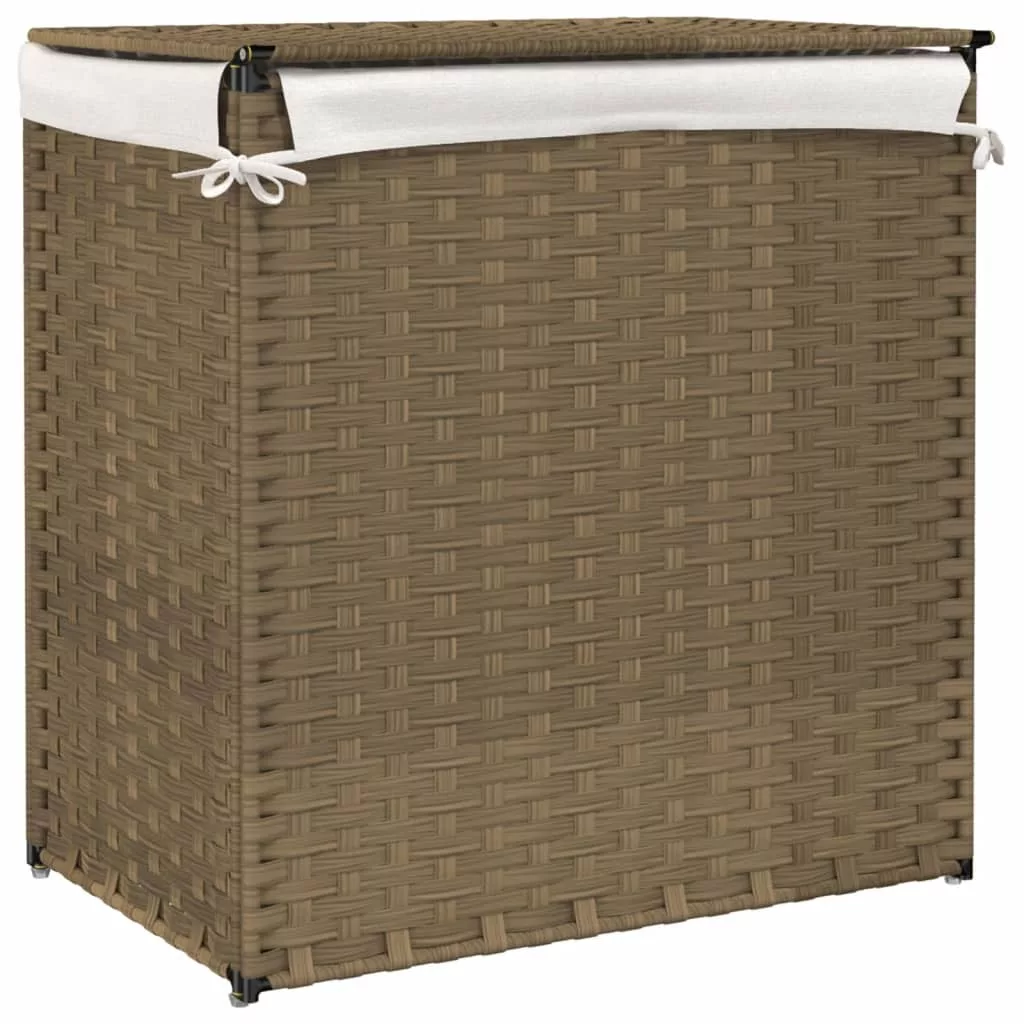 polyrattan szennyeskosár 2 rekesszel 53x33x57 cm