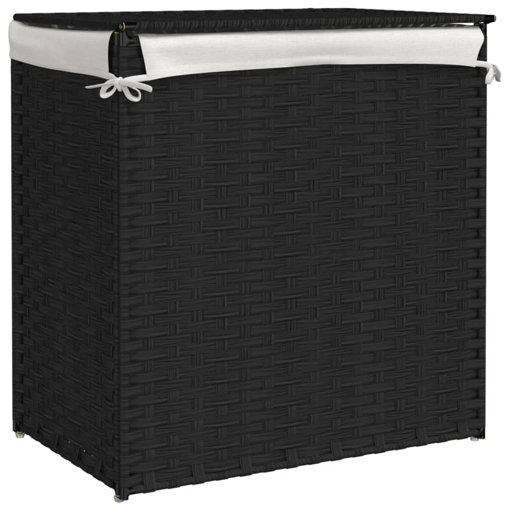 fekete polyrattan szennyeskosár 2 rekesszel 53x33x57 cm
