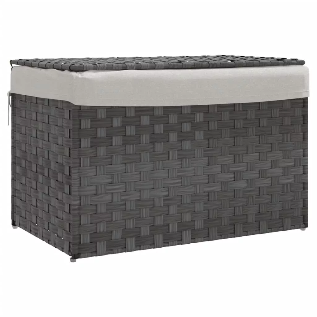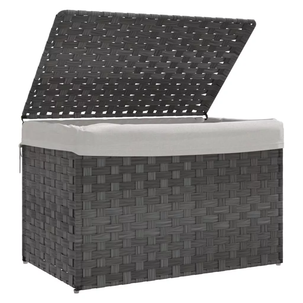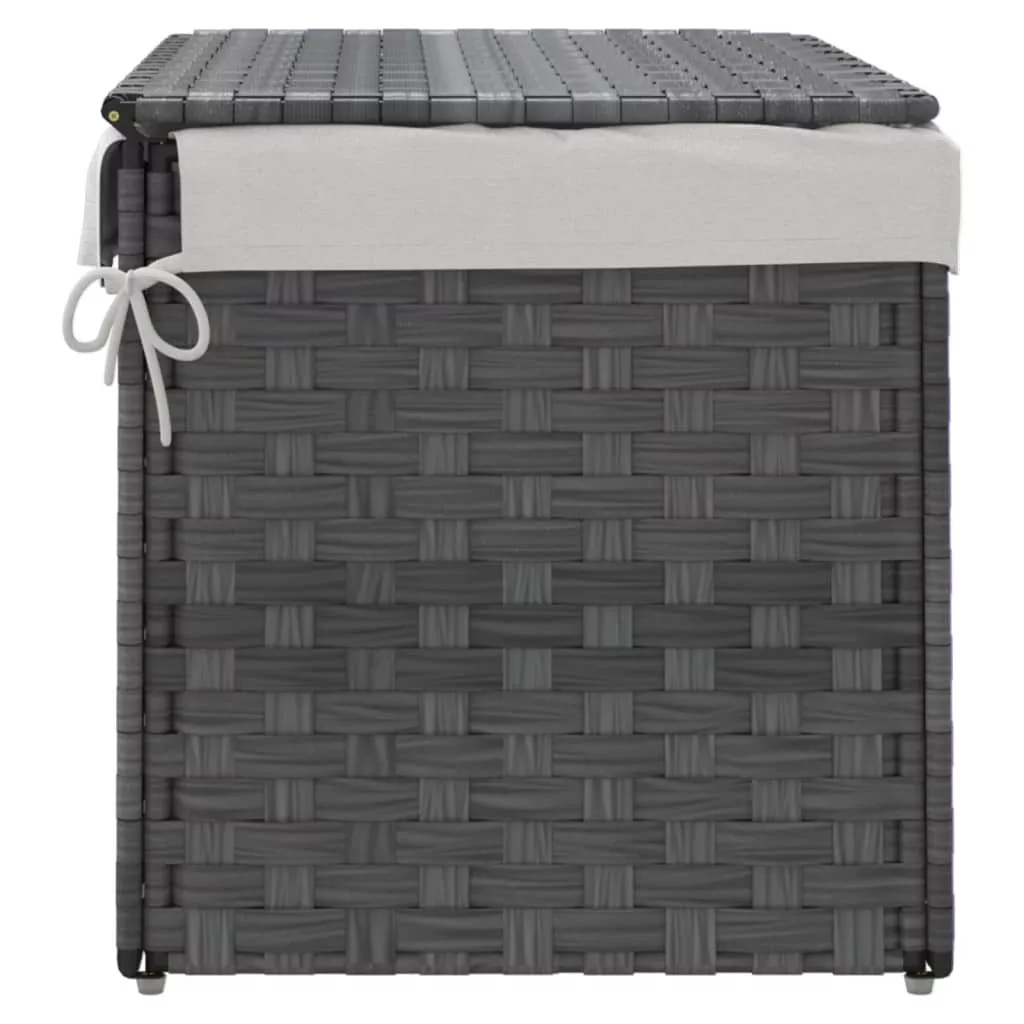 szürke polyrattan szennyeskosár fedéllel 55,5 x 35 x 34 cm