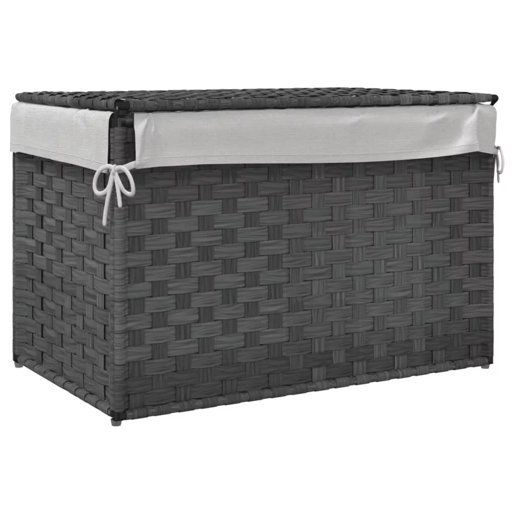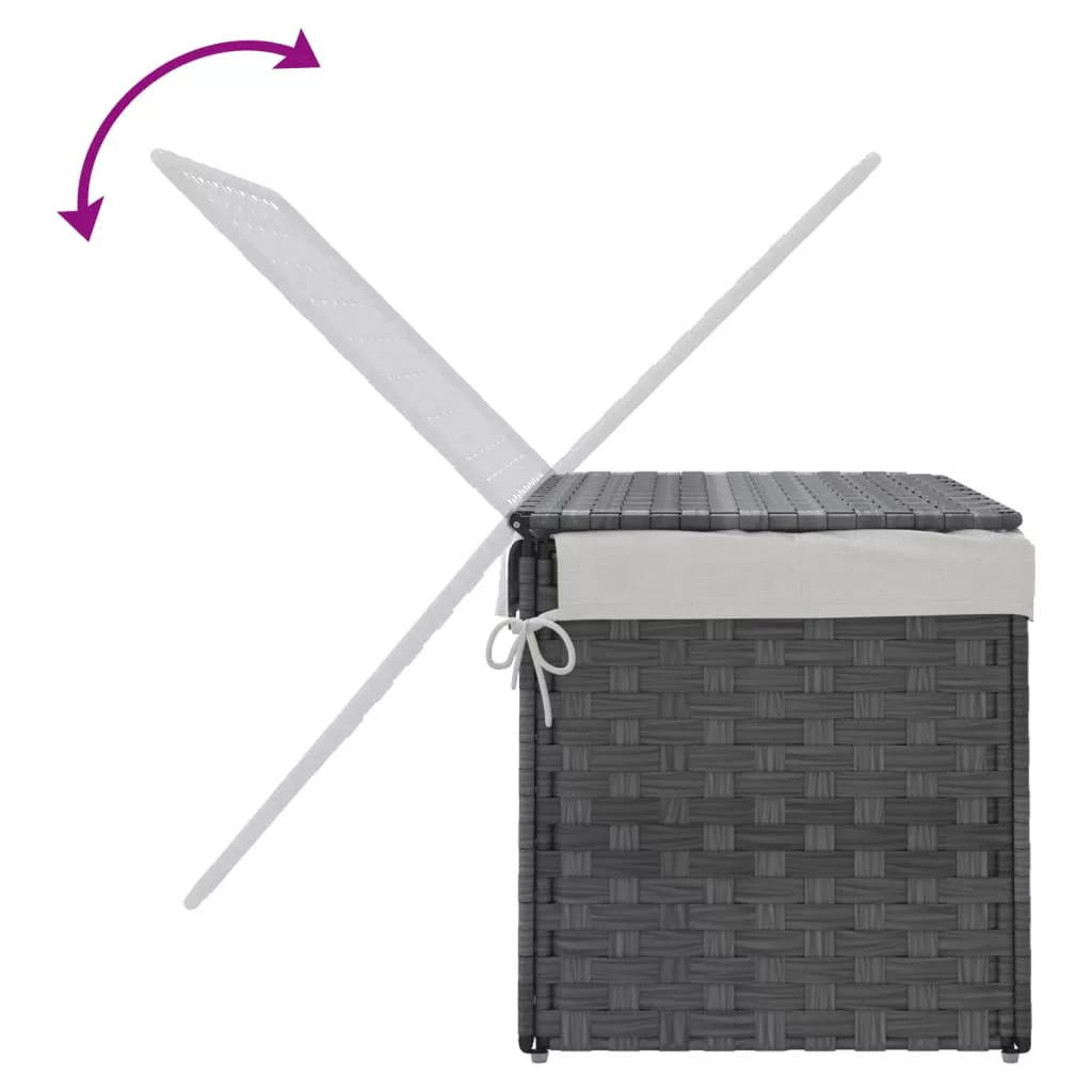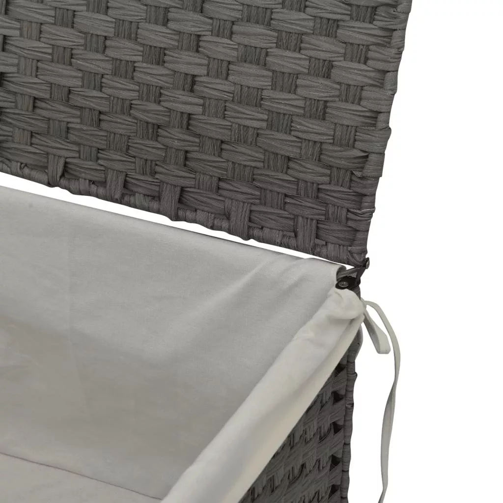szürke polyrattan szennyeskosár fedéllel 55,5 x 35 x 34 cm