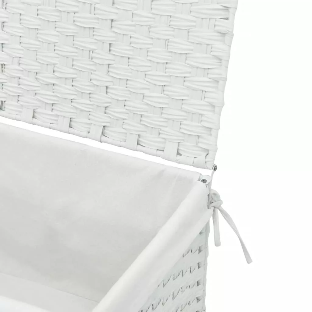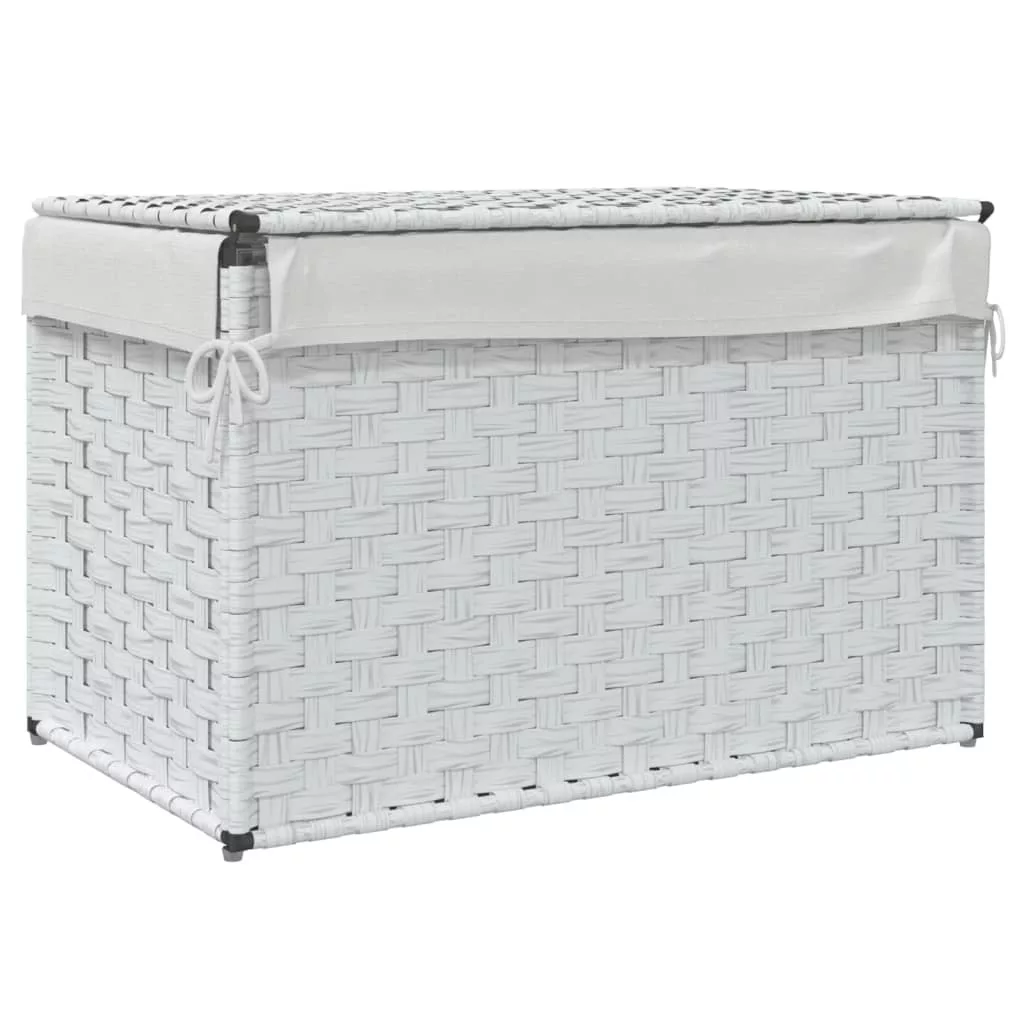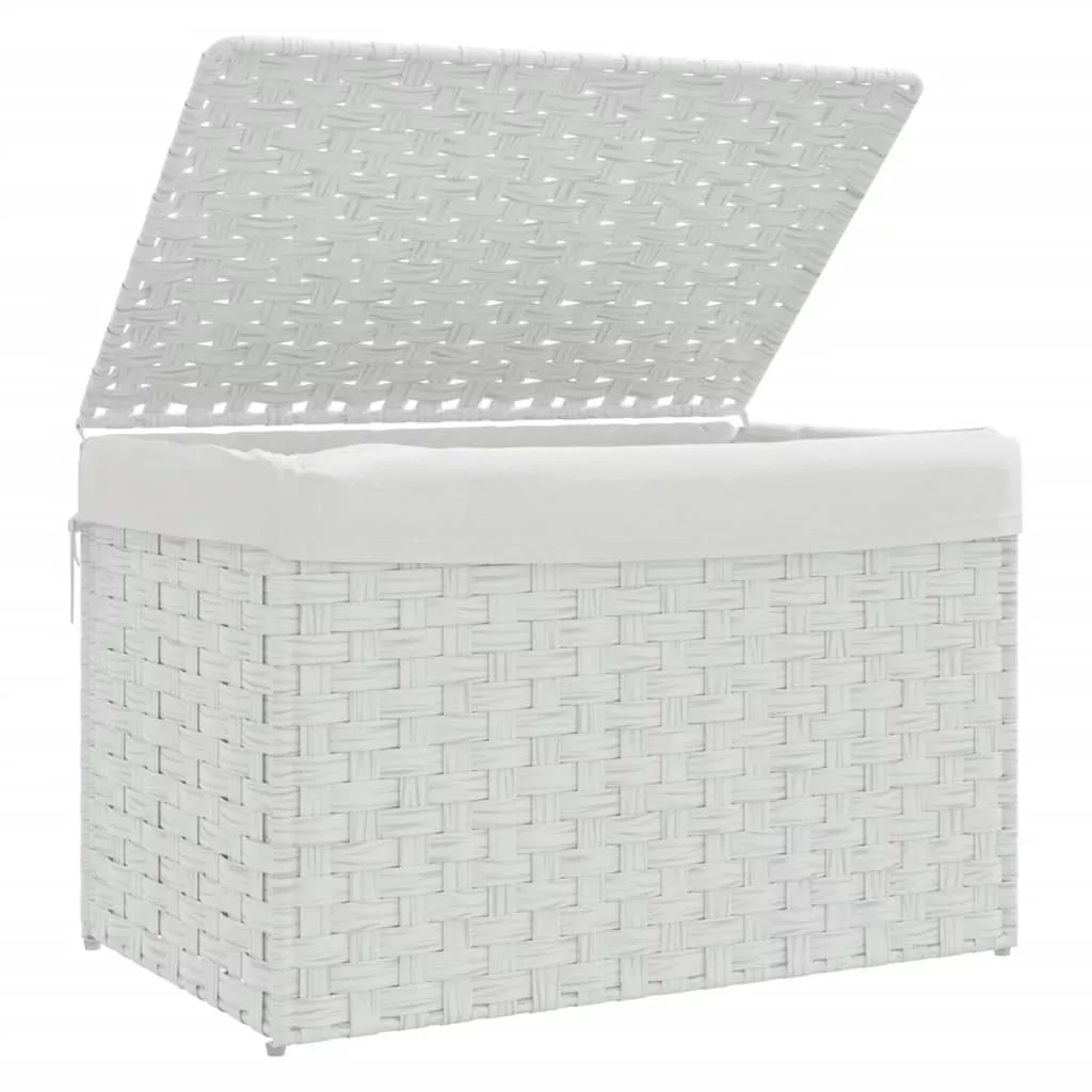 fehér polyrattan szennyeskosár fedéllel 55,5 x 35 x 34 cm